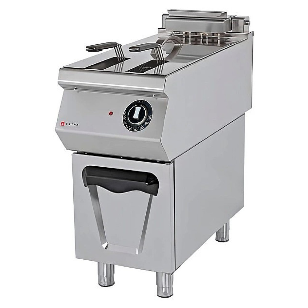 Фритюрница Tatra TEF.49F предназначена для приготовления различных продуктов в большом количестве масла на предприятиях общественного питания и торговли. Модель оснащена механической панелью управления, термостатом и регулируемыми ножками. Корпус выполнен из нержавеющей стали, защищающей от коррозии.