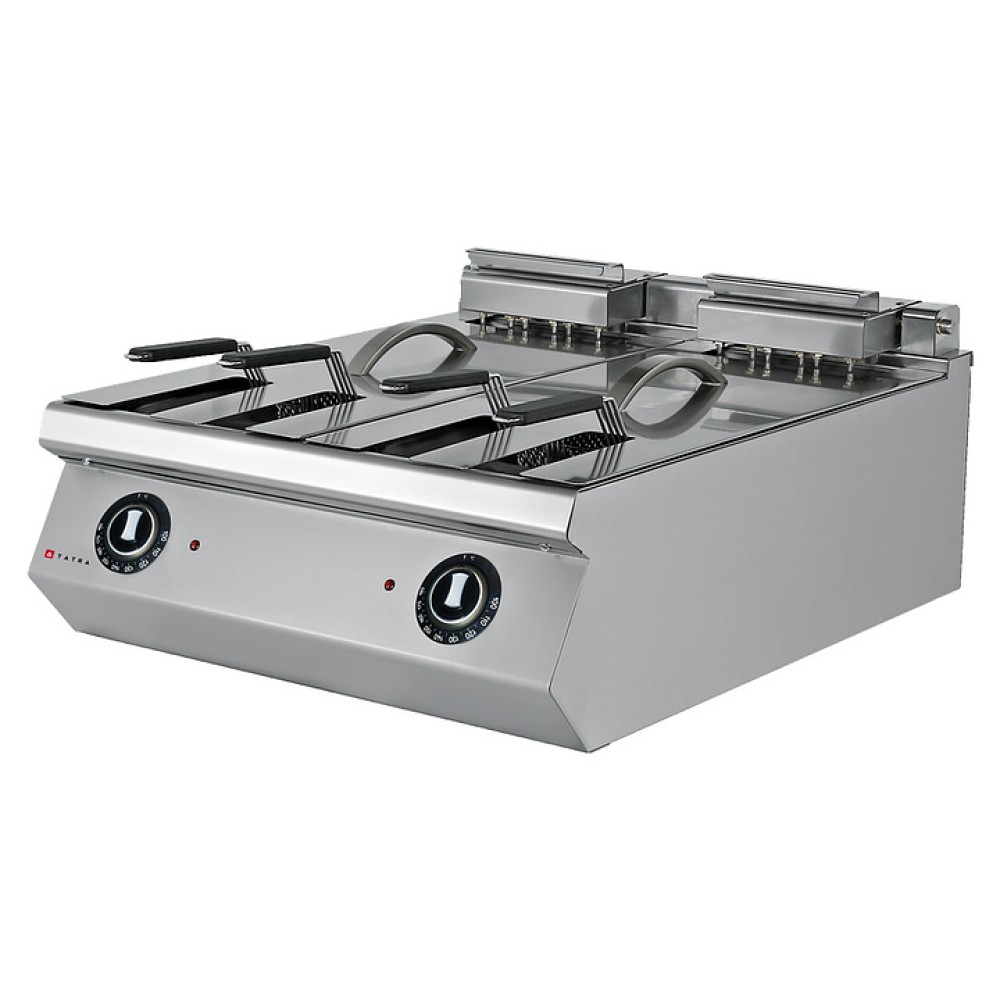 Фритюрница Tatra TEF.87 предназначена для приготовления различных продуктов в большом количестве масла на предприятиях общественного питания и торговли. Модель оснащена механической панелью управления, термостатом и регулируемыми ножками. Корпус выполнен из нержавеющей стали, защищающей от коррозии.