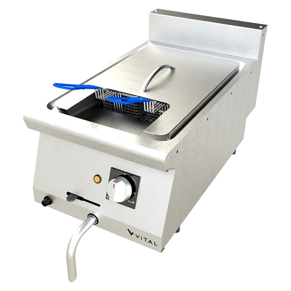 Фритюрница VITAL PRO-EFP7010 серии 700 PRO предназначена для приготовления различных продуктов в большом количестве масла при высокой температуре на предприятиях общественного питания и торговли. Модель оснащена краном для слива масла, предохранительным термостатом для предотвращения перегрева масла и подвижными нагревателями с предохранительными выключателями для очистки внутренней камеры. Закругленные углы рабочей поверхности обеспечивают легкую чистку. Корпус выполнен из нержавеющей стали.