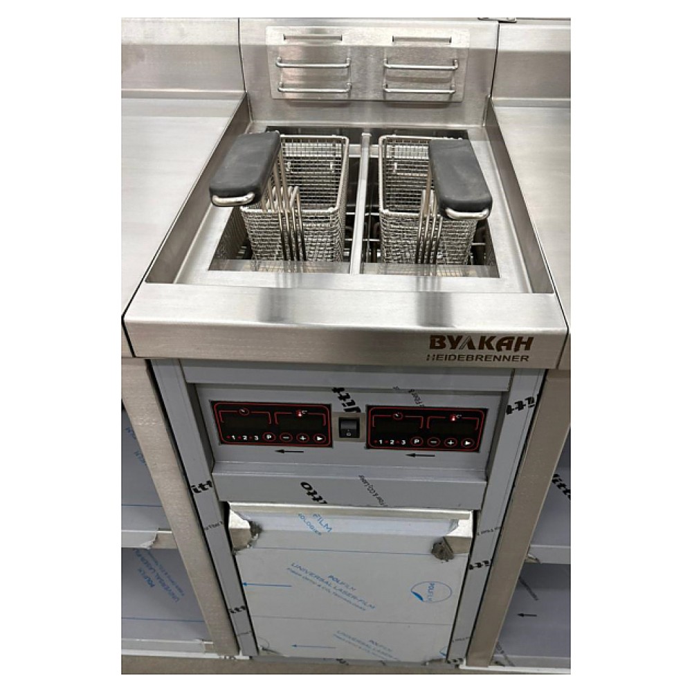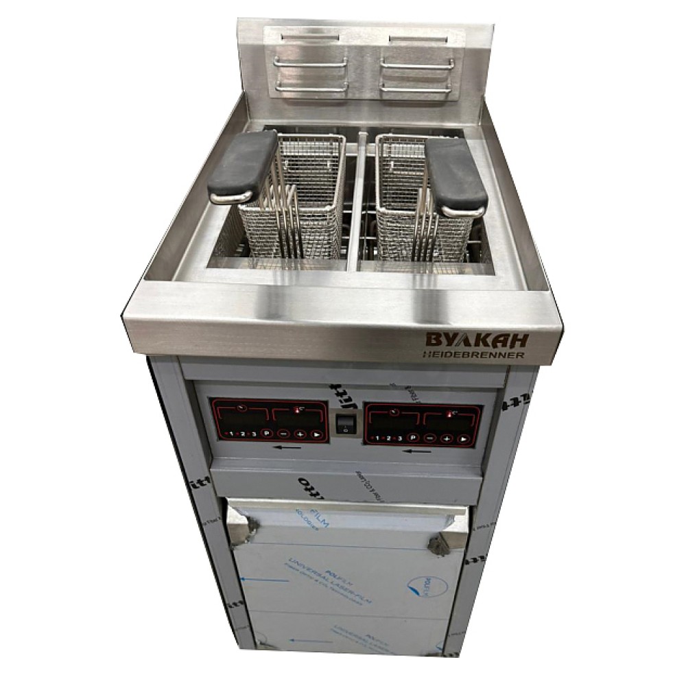 Фритюрница Вулкан ETK B2 Герреро используется на предприятиях общественного питания и торговли для приготовления картофеля-фри и других блюд путем обжарки в большом количестве масла. Модель оснащена электронной панелью управления, индикатором работы и нагрева, сливным вентилем, распашной дверью и емкостью для сбора масла.