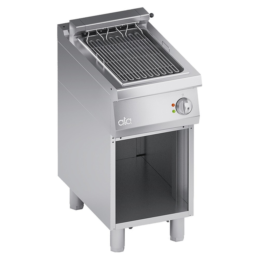 Электрический гриль АТА ELECTRIC DIRECT GRILL 1/2 + OPEN CABINET предназначен для жарки различных продуктов на предприятиях общественного питания и торговли. Модель оснащена съемным резервуаром для воды со сливным отверстием и ножками, регулируемыми по высоте. Корпус, рабочая поверхность и съемный водосборный бак изготовлены из нержавеющей стали AISI 304.