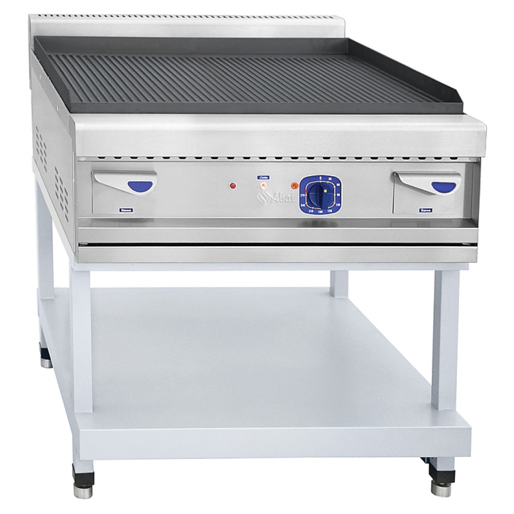 Жарочная поверхность Abat АКО-90/1КП-С-02 предназначена для приготовления мяса, рыбы, овощей и других продуктов методом жарки на предприятиях общественного питания и торговли. Модель оснащена контрольными лампами, 2 лотками для сбора масла, бортиком от разбрызгивания и регулируемыми по высоте ножками. Боковые, передняя и задняя поверхности выполнены из нержавеющей стали AISI304,подставка с полкой из крашенного металла.