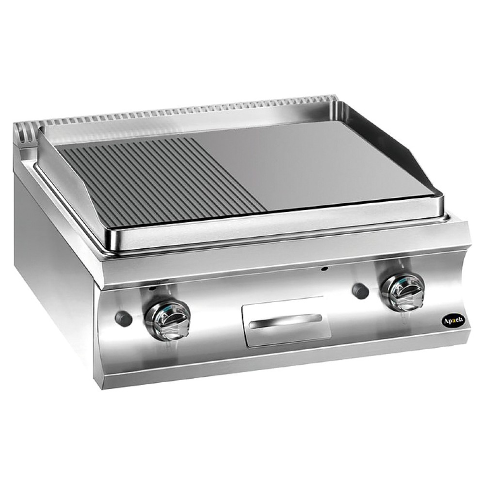 Жарочная поверхность Apach Chef Line GLFTE77LR 700-й серии предназначена для обжарки мяса, рыбы и овощей на предприятиях общественного питания и торговли. Модель оснащена электромеханической панелью управления с терморегуляторами и выдвижным лотком для сбора остатков пищи, масла и жира. Корпус выполнен из нержавеющей стали AISI 304, жарочная поверхность - из стали толщиной 1,5 мм.