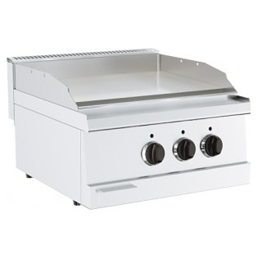 Жарочная поверхность KUSINA G6I200E-CD используется в составе тепловой линии 600 для приготовления жареных мясных блюд, яичницы, жареной рыбы, оладьев, котлет и гамбургеров на предприятиях общественного питания и торговли. Модель оснащена гладкой хромированной поверхностью с 2 зонами нагрева, бортиком с 3-х сторон и вместительным жиросборником. Оборудование изготовлено из нержавеющей стали.