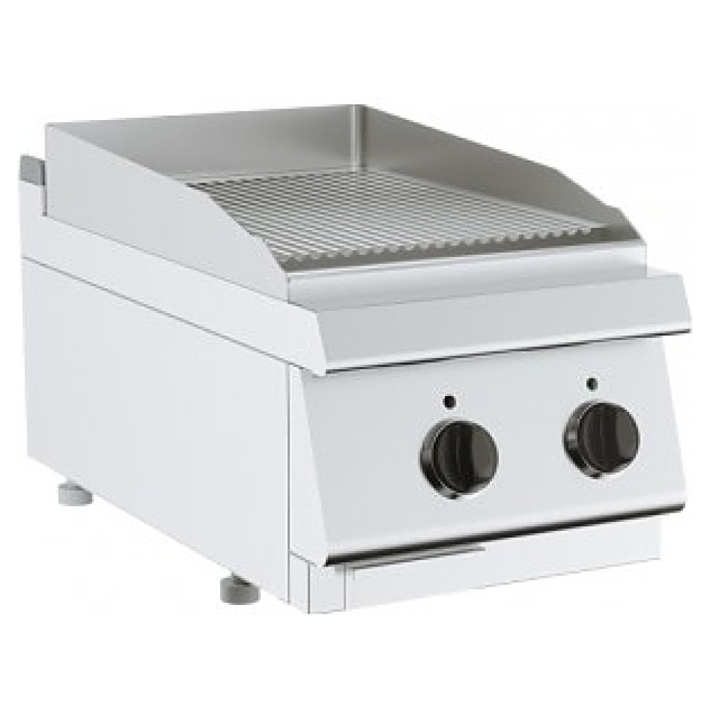 Жарочная поверхность KUSINA G7I110E-SC используется в составе тепловой линии 700S для приготовления жареных мясных блюд, яичницы, жареной рыбы, оладьев, котлет и гамбургеров на предприятиях общественного питания и торговли. Модель оснащена рифленой хромированной поверхностью с 1 зоной нагрева, бортиком с 3-х сторон и вместительным жиросборником. Оборудование изготовлено из нержавеющей стали.