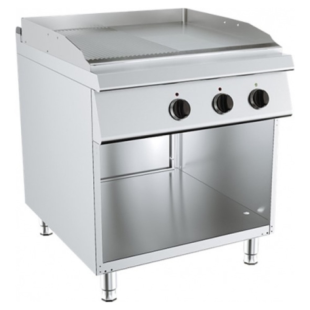 Жарочная поверхность KUSINA G9I 220E-W используется в составе тепловой линии 900 для приготовления жареных мясных блюд, яичницы, жареной рыбы, оладьев, котлет и гамбургеров на предприятиях общественного питания и торговли. Модель оснащена комбинированной стальной поверхностью с 2 зонами нагрева, бортиком с 3-х сторон, вместительным жиросборником и полузакрытом стендом без двери. Оборудование изготовлено из нержавеющей стали.