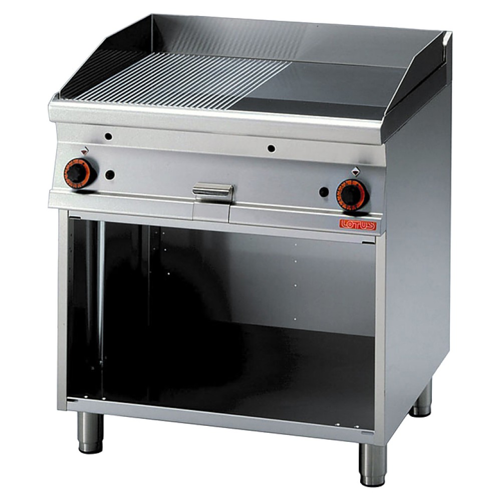 Жарочная поверхность Lotus FTLR-98ET предназначена для приготовления различных блюд на предприятиях общественного питания. Модель оснащена пакетным переключателем с регулировкой температуры, лотком для сбора масла и жира, нейтральным шкафом без двери и регулируемыми ножками. Наличие борта с трех сторон позволяет предотвратить разбрызгивание жира при приготовлении блюд.