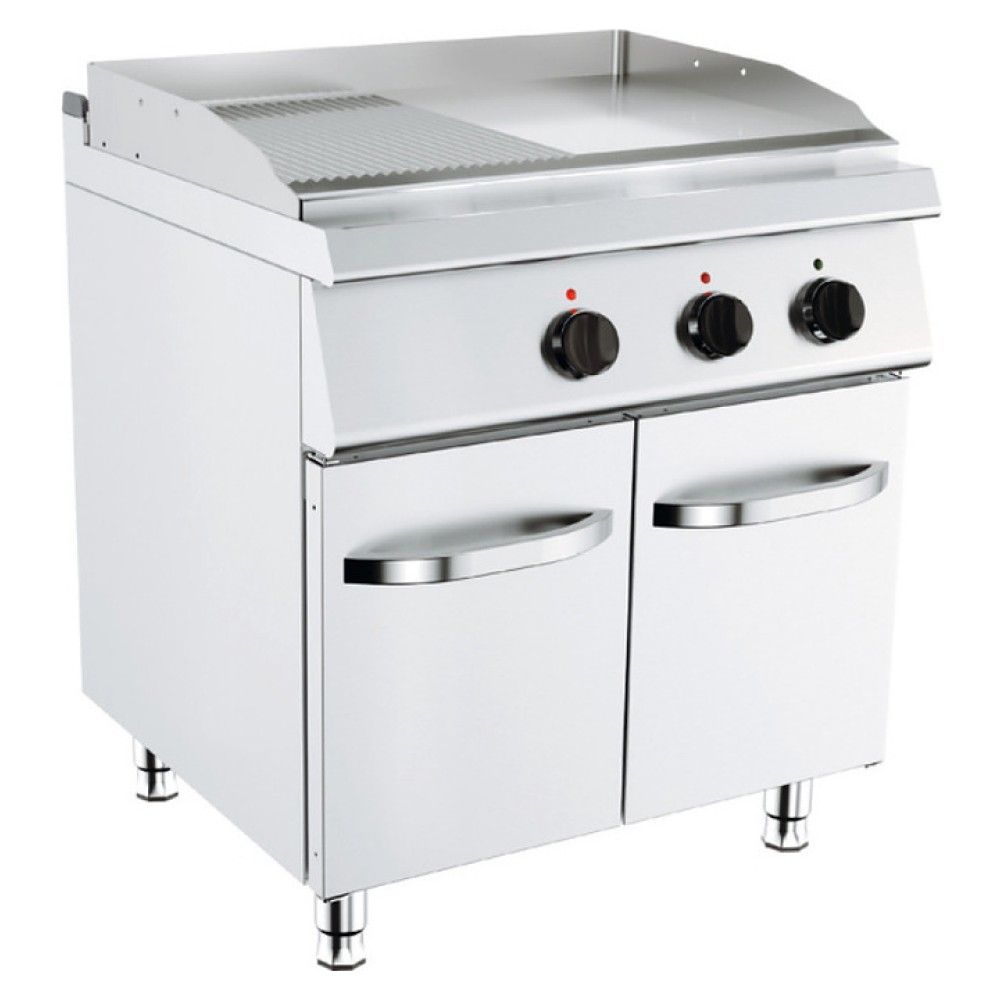 Напольная жарочная поверхность Вулкан Лайт VGC98912E-K используется на предприятиях общественного питания и торговли отдельно или в составе тепловой линии Лайт 900 для приготовления различных продуктов. Модель оснащена электрическим термостатом для контроля температуры, стендом с 3 сторон, 2 распашными дверьми и регулируемыми ножками. Корпус и ящик для сбора масла выполнены из нержавеющей стали, жарочная панель - из стали с твердым хромированным покрытием, задняя решетка - из чугуна с эмалированным покрытием.