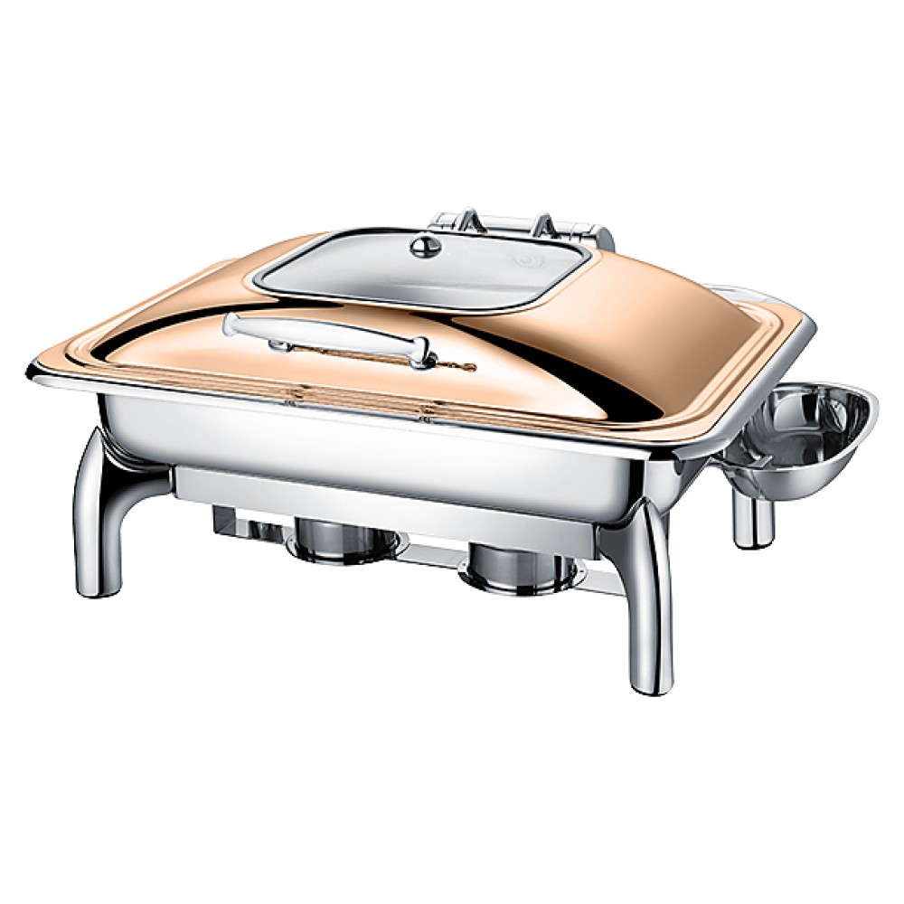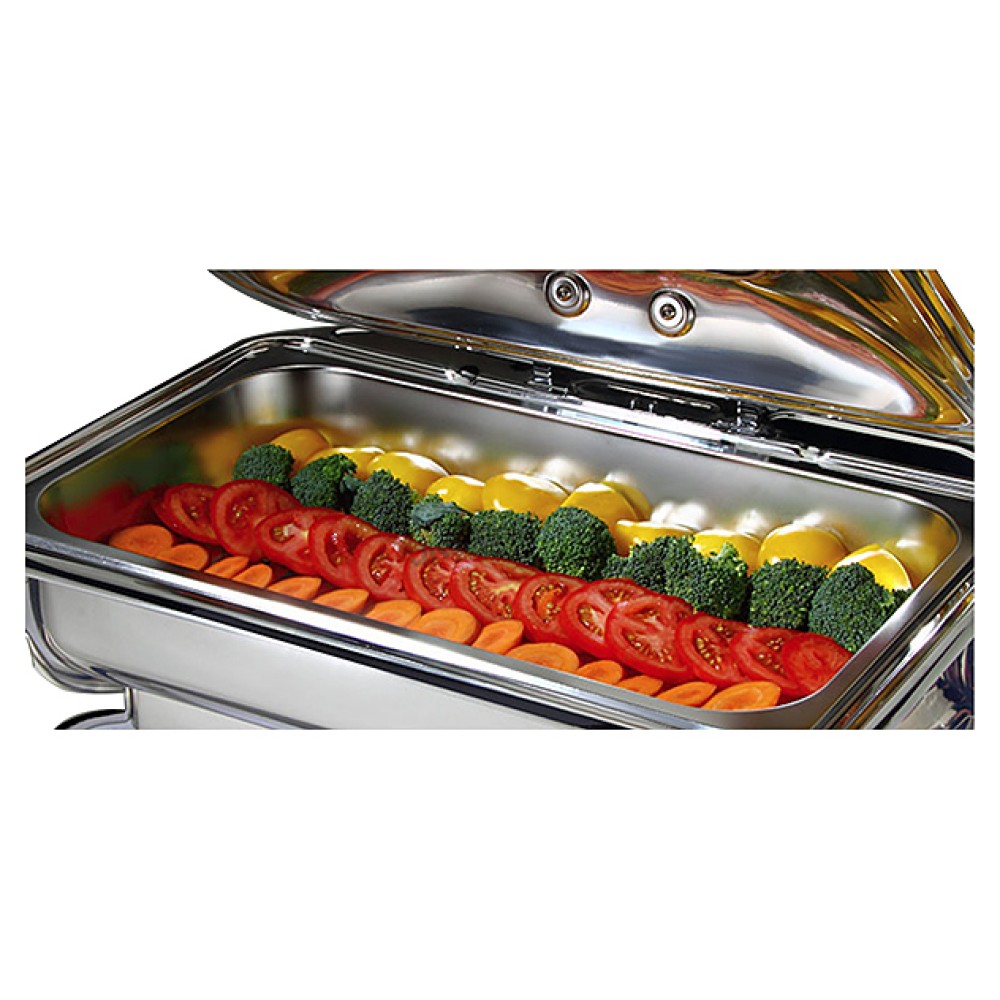 Чафинг-диш Crazy Pan CP-CHD016RG предназначен для постоянного подогрева первых и вторых блюд и поддержания их оптимальной температуры на предприятиях общественного питания и торговли. Модель оснащена крышкой с гидравлическим подъемным механизмом, позволяющим ей надежно удерживаться в открытом состоянии под углом 90°. Нагрев можно осуществлять с помощью встраиваемого электрического блока или стандартной горелки. Корпус выполнен из нержавеющей стали.