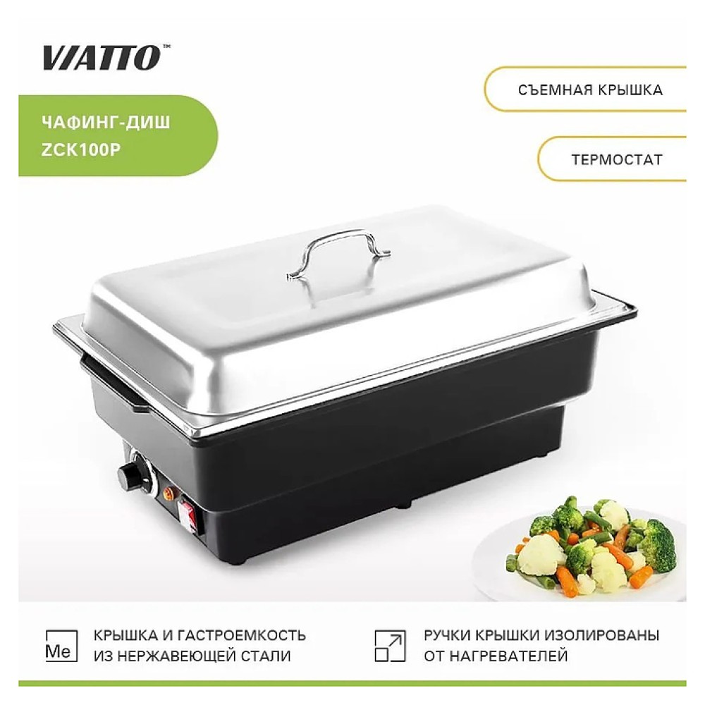 Чафинг-диш VIATTO ZCK100P предназначен для поддержания в горячем состоянии широкого спектра блюд на предприятиях общественного питания и торговли. Корпус выполнен из пластика, съемная крышка и гастроемкость - из нержавеющей стали.