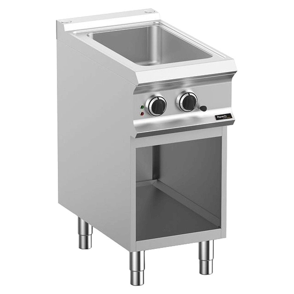 Мармит Apach Chef Line GLBME47OSP серии 700 используется в составе технологической линии или самостоятельно для поддержания в горячем состоянии первых и вторых блюд на предприятиях общественного питания и торговли. Модель оснащена нагревательными элементами, расположенными под ванной и открытой подставкой с регулируемыми ножками. Корпус и ванна выполнены из нержавеющей стали AISI 304, нагревательные элементы - из армированной нержавеющей стали.