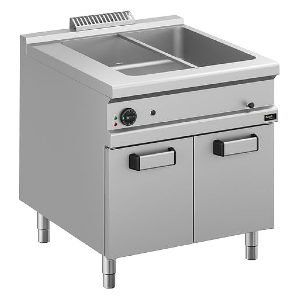 Мармит Apach Cook Line APBE-89P/PL предназначен для поддержания в горячем состоянии первых и вторых блюд на предприятиях общественного питания и торговли. Модель оснащена термостатом для управления, закрытой подставкой для хранения инвентаря и регулируемыми ножками. Мармит можно использовать самостоятельно или в составе технологической линии. Столешница и армированные нагревательные элементы выполнены из нержавеющей стали AISI 304.