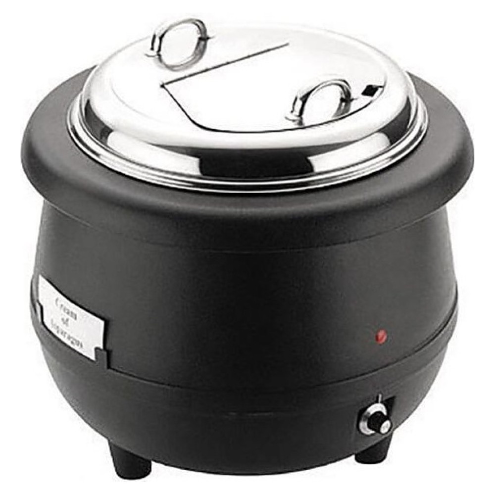 Электрический мармит Sunnex 82328-1 предназначен для постоянного подогрева первых блюд и поддержания их оптимальной температуры на предприятиях общественного питания и торговли. Модель оснащена съемной крышкой с рукояткой, отверстием для половника и электромеханической панелью управления. Корпус в форме горшочка выполнен из термостойкого полипропилена черного цвета, емкость и крышка – из высококачественной нержавеющей стали с серебристой поверхностью.