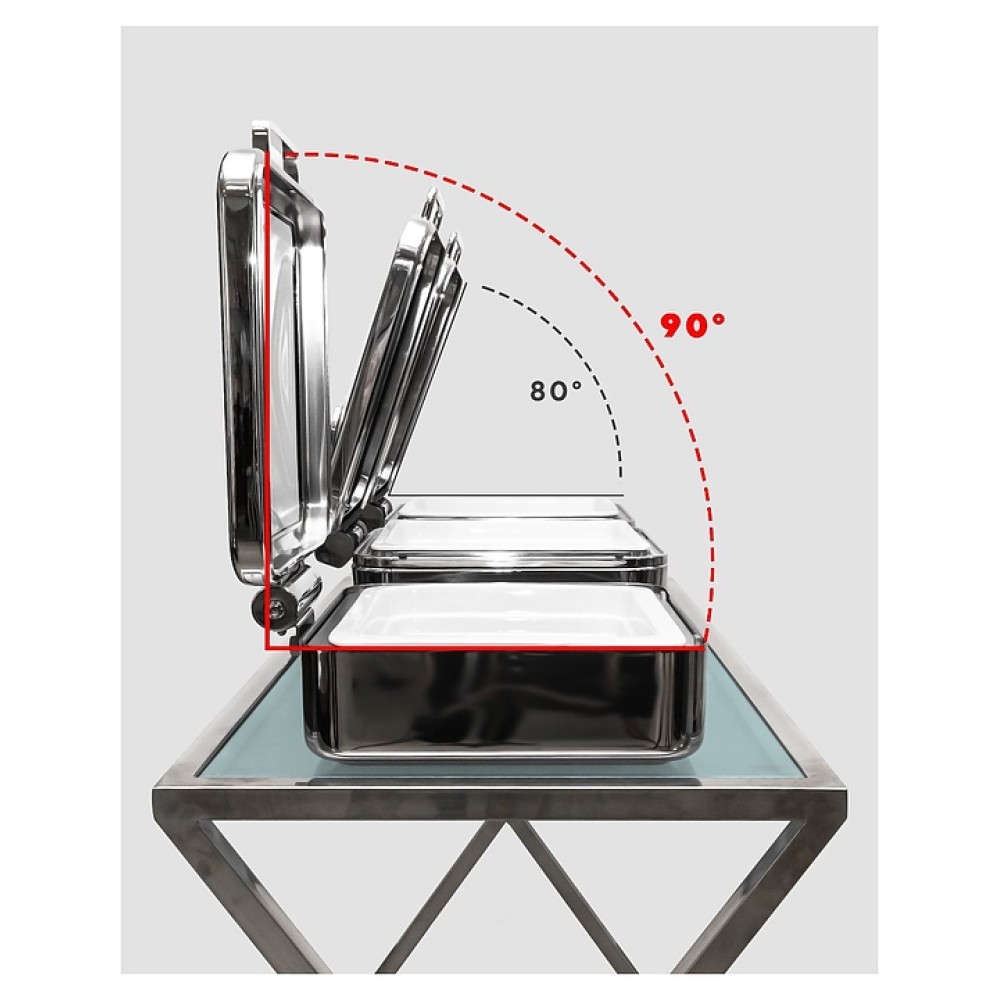 Тепловой мармит F&B Project 8060L предназначен для демонстрации и кратковременного хранения горячих и теплых вторых блюд, поддержания их в теплом состоянии на предприятиях общественного питания и торговли. Модель оснащена фиксацией открытой крышки на уровне 90 ° для удобства гостей и автоматическим закрытием микролифт, которое исключает заветривание блюд. Верхняя крышка снимается и емкость можно использовать как открытый мармит с тепловой лампой. Корпус выполнен из нержавеющей стали, крышка - из стекла.