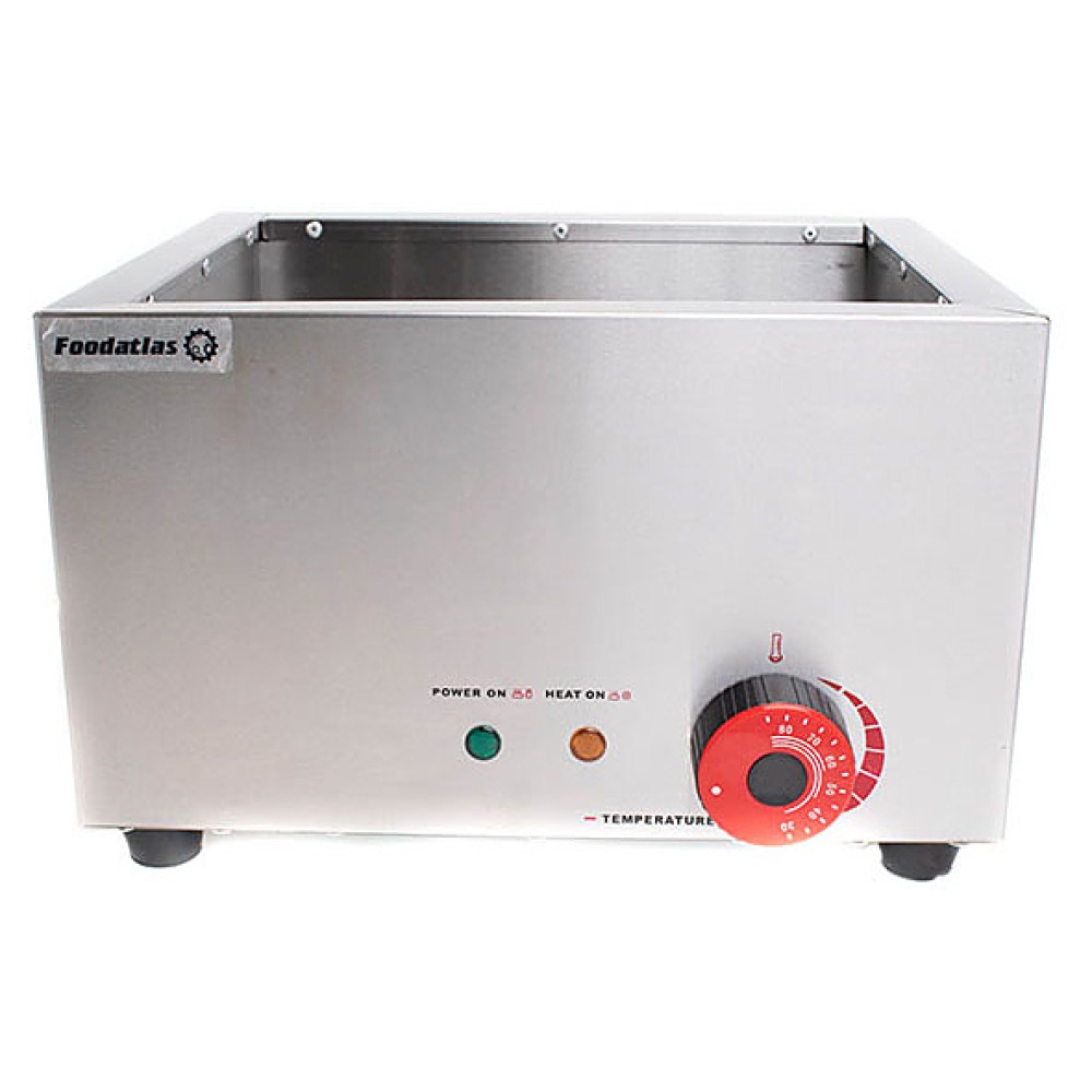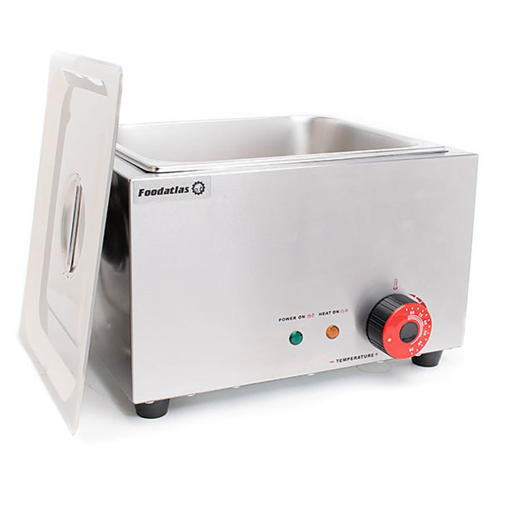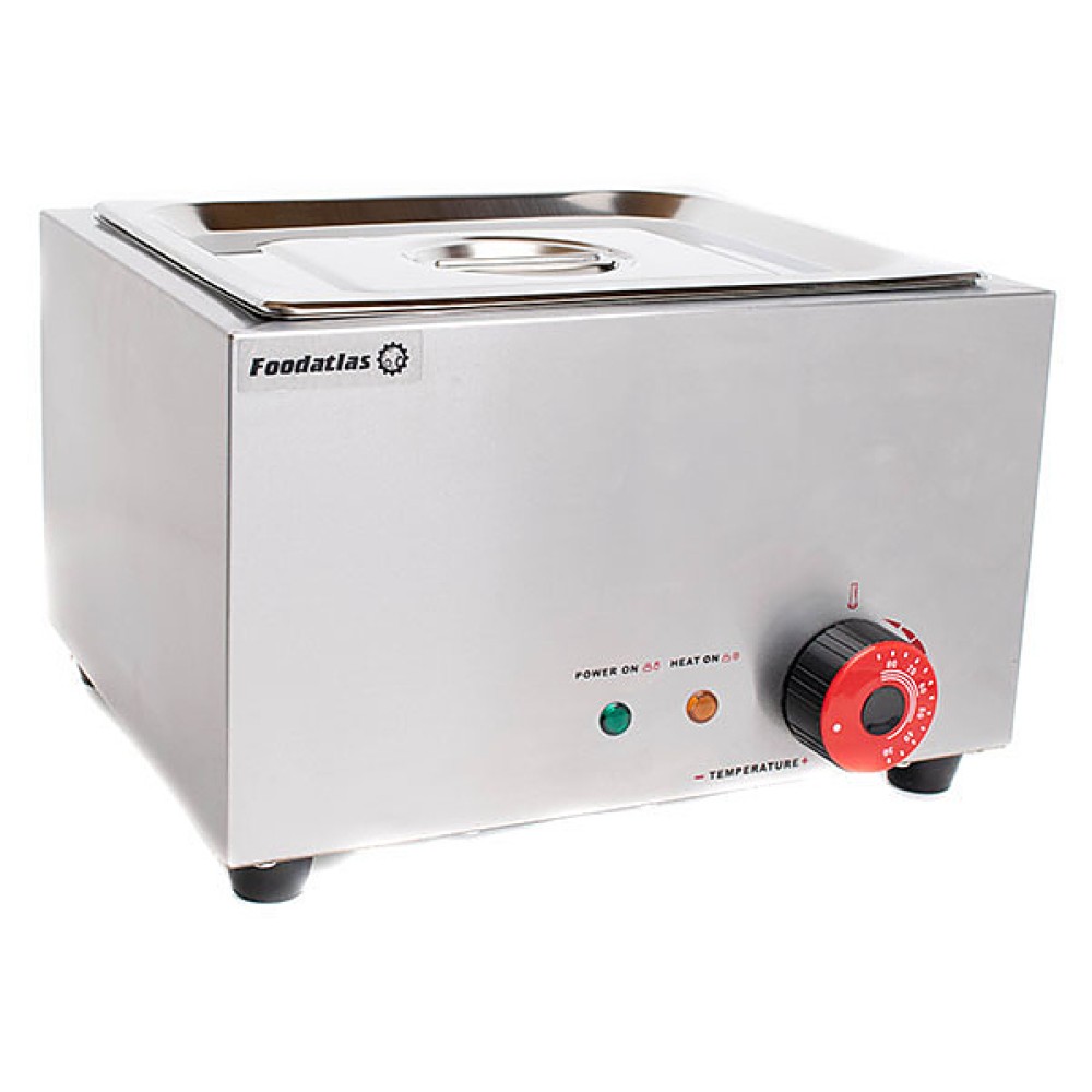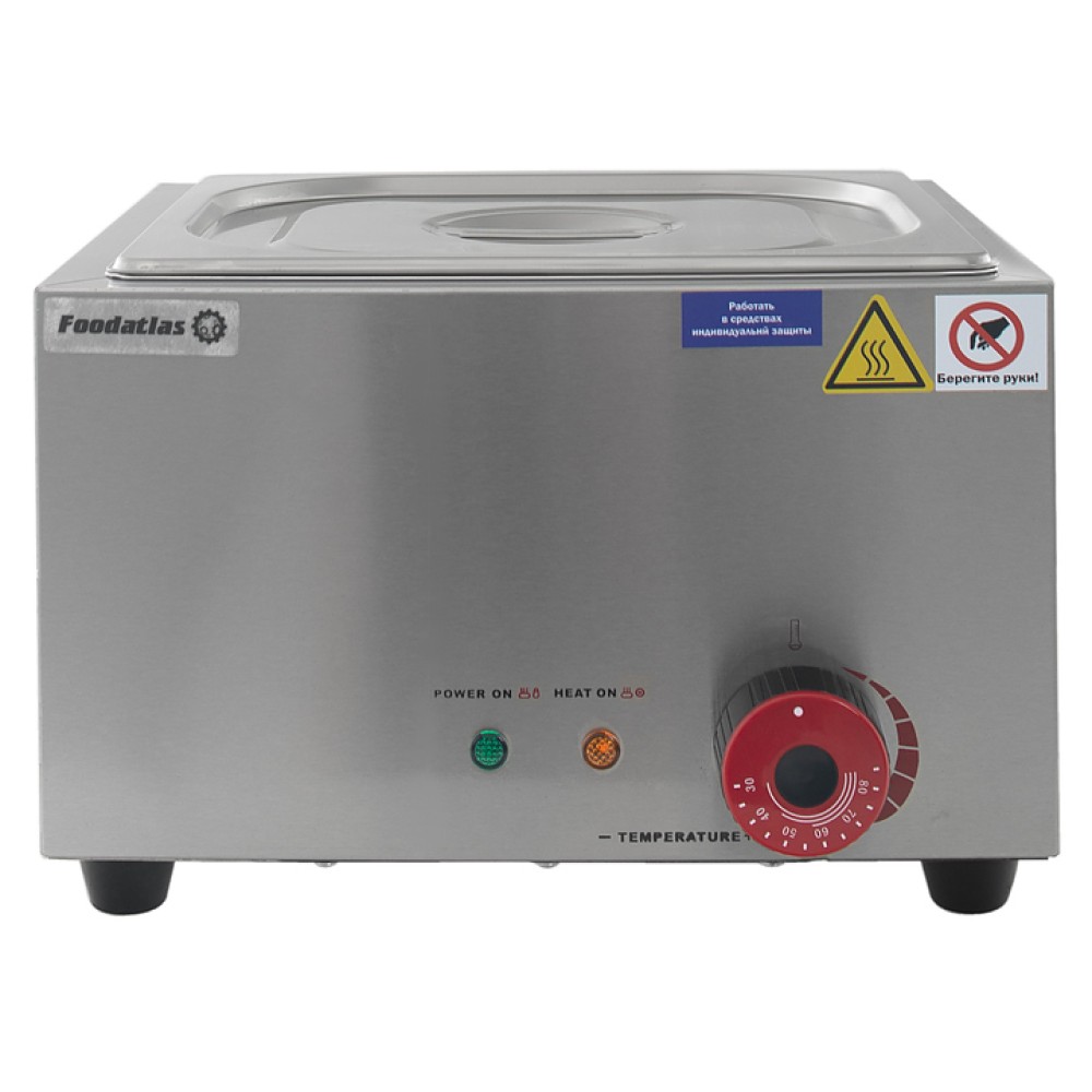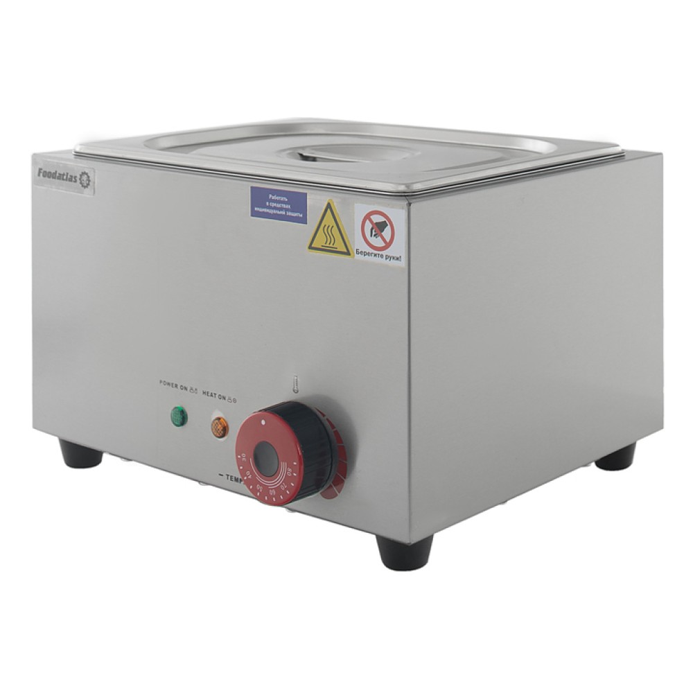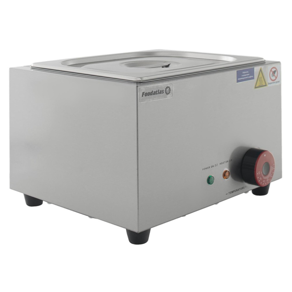 Мармит Foodatlas EH-1V предназначен для подогрева и поддержания в теплом состоянии первых и вторых блюд, различных соусов и гарниров на предприятиях общественного питания и торговли. Модель оснащена терморегулятором. Корпус выполнен из нержавеющей стали 430, гастроемкость - из нержавеющей стали 201.