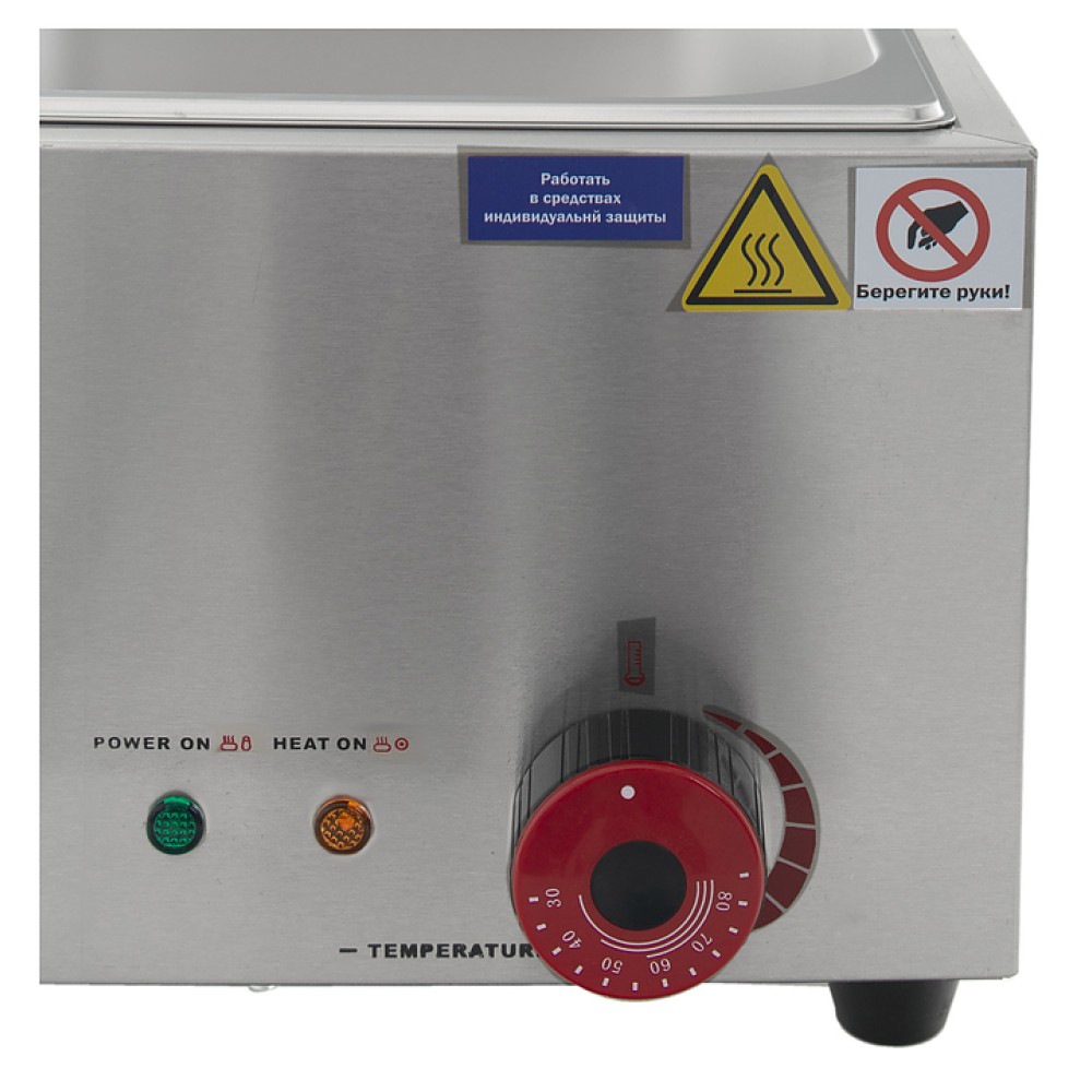 В комплект поставки входят съемная гастроемкость GN 1/2 глубиной 100 мм с крышками.