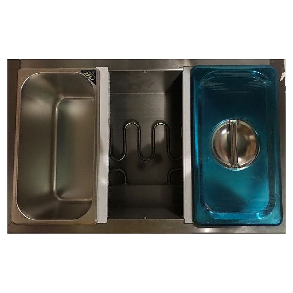 В комплект поставки входят 4 съемных гастроемкости GN 1/2 глубиной 100 мм с крышками.