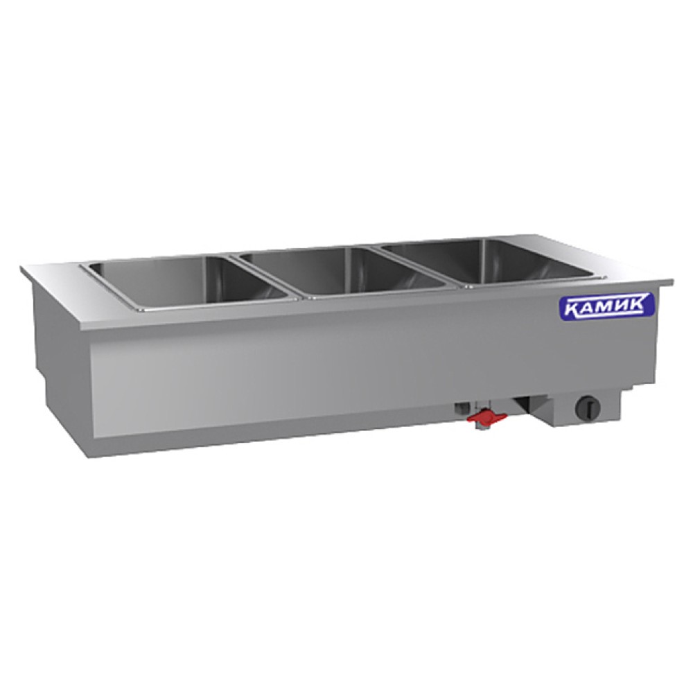 Мармит КАМИК МУ-108635 используется на предприятиях общественного питания и торговли для кратковременного хранения, демонстрации и поддержания в теплом состоянии супов, гарниров, вторых блюд и соусов. Модель оснащена ванной с теплоизоляцией и 2 делителями. В правой части конструкции расположен термостат, позволяющий регулировать температуру. Корпус выполнен из нержавеющей стали AISI 430.