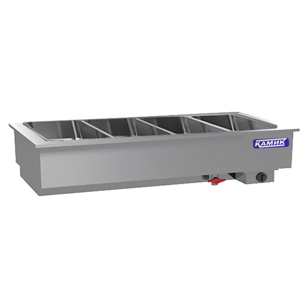Мармит КАМИК МУ-344933 используется на предприятиях общественного питания и торговли для кратковременного хранения, демонстрации и поддержания в теплом состоянии супов, гарниров, вторых блюд и соусов. Модель оснащена ванной с теплоизоляцией и 3 делителями. В правой части конструкции расположен термостат, позволяющий регулировать температуру. Корпус выполнен из нержавеющей стали AISI 430.
