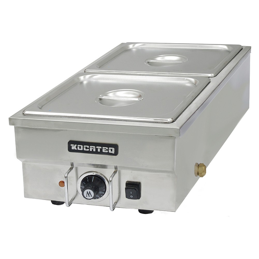 Мармит Kocateq BS2TNW предназначен для поддержания готовых блюд в горячем виде на предприятиях общественного питания и торговли, в школах и детских садах. Модель оснащена аналоговым термостатом для регулировки температуры и защитным термостатом, автоматически отключающим напряжение при повреждении основного термостата. Корпус выполнен из нержавеющей стали AISI 304, скобки - из нержавеющей стали.