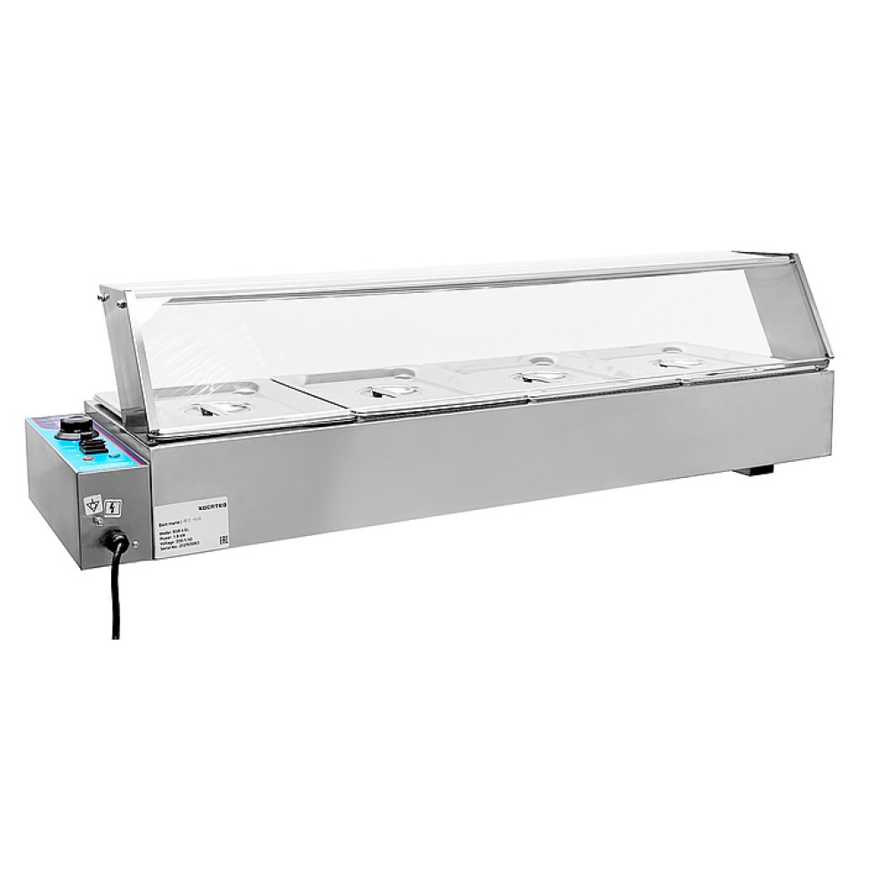 Мармит Kocateq BSB 4 GL линии Green Line предназначен для поддержания готовых блюд в горячем виде на предприятиях общественного питания и торговли, в школах и детских садах. Модель оснащена аналоговым термостатом для регулировки температуры и защитным термостатом, автоматически отключающим напряжение при повреждении основного термостата. Корпус выполнен из нержавеющей стали AISI 201 толщиной 0,7 мм, ванна - из нержавеющей стали AISI 201.