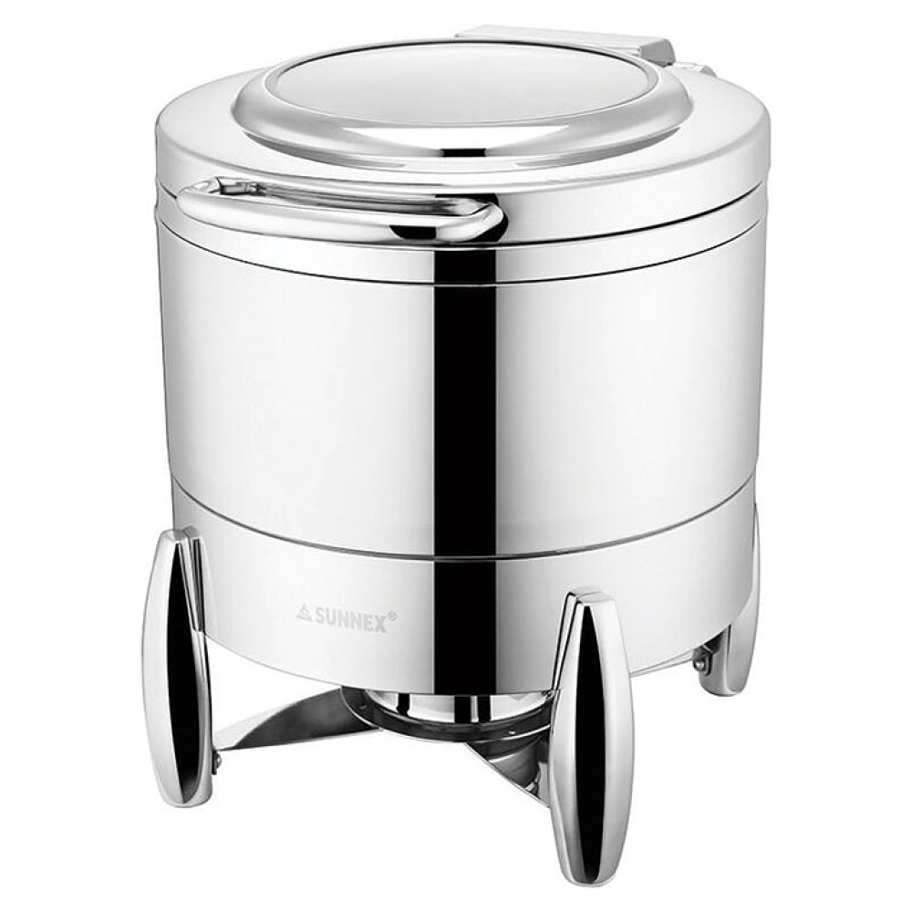 Мармит Sunnex W10-2011 предназначен для постоянного подогрева первых блюд и поддержания их оптимальной температуры на предприятиях общественного питания и торговли. Модель круглого сечения оснащена откидной крышкой с рукояткой. Корпус выполнен из высококачественной нержавеющей стали с серебристой поверхностью, остекление – из закаленного стекла.