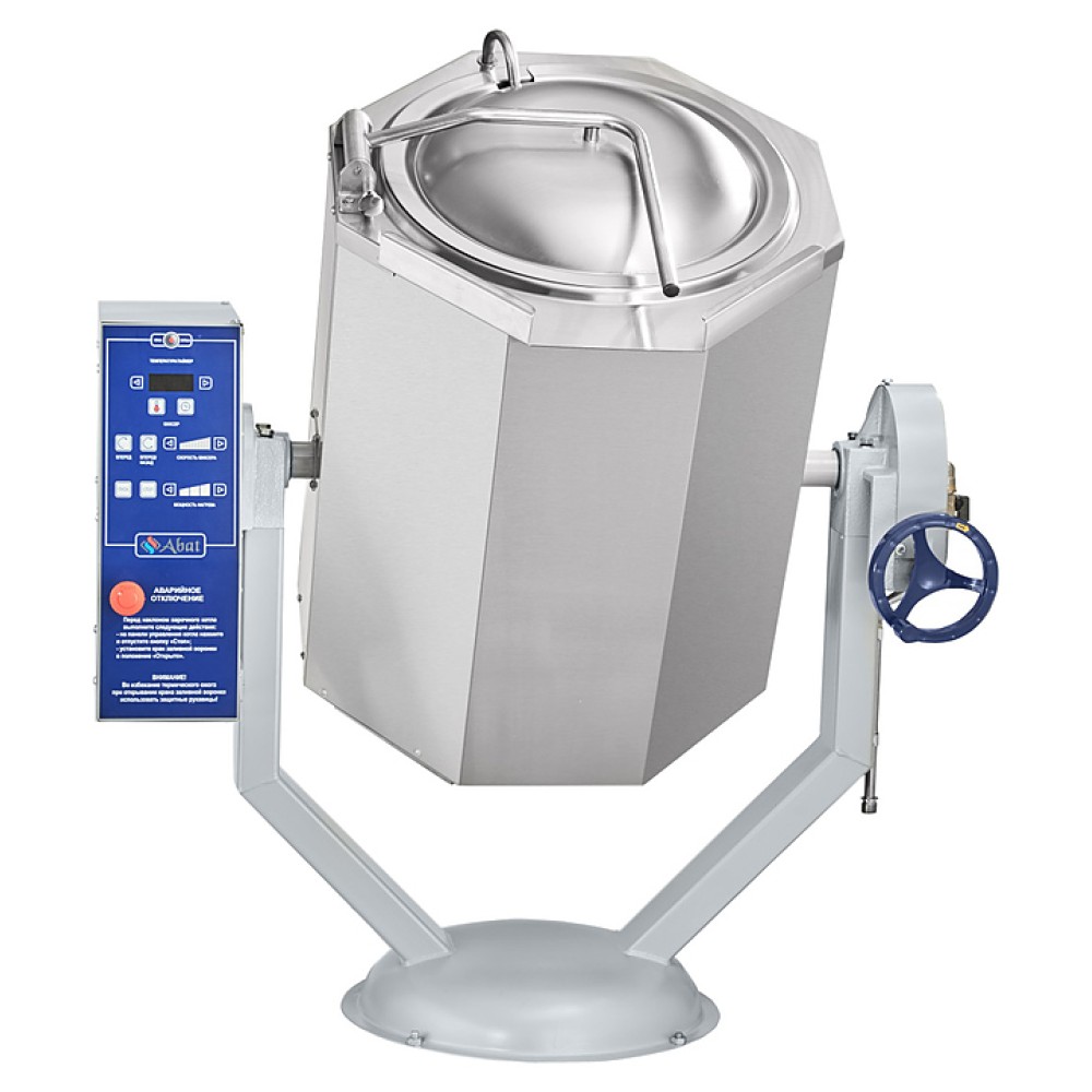 Варочный котел Abat КПЭМ-60-ОМР-В с функциями опрокидывания и перемешивания предназначен для приготовления вторых и третьих блюд, бульонов, соусов и десертов, а также для кипячения воды на предприятиях пищевой промышленности и общественного питания. Модель оснащена электронной панелью управления.