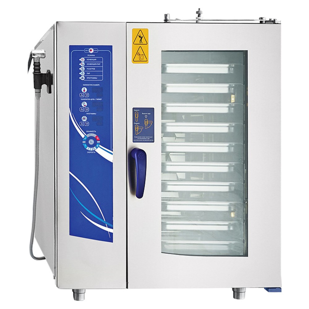 Пароконвектомат Abat ПКА 10-1/1ПМФ2 предназначен для обжаривания, приготовления на пару, бланширования, запекания и других видов тепловой обработки продуктов на на морских судах, на площадках в открытом море и на береговых линиях. Оборудование заменяет сразу несколько видов приборов: плиту, конвекционную печь, жарочный шкаф, духовку, опрокидывающуюся сковороду, пищеварочный котел, фритюрницу и др. Приготовленные в пароконвектомате блюда сохраняют все полезные вещества. Модель оснащена подсветкой, легкосъемным жировым фильтром, душем для мойки и дверью с двойным остеклением.