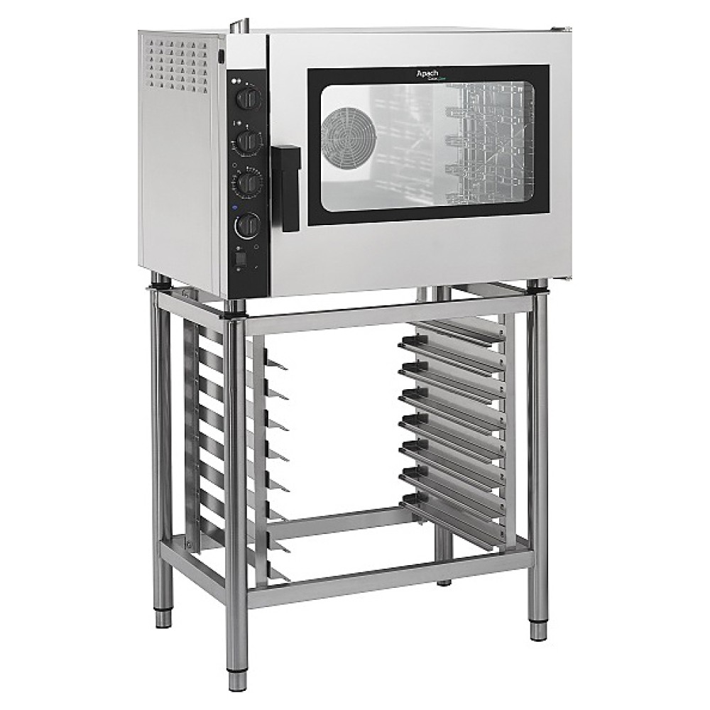 Пароконвектомат Apach AP5GM GAS предназначен для обжаривания, приготовления на пару, бланширования, запекания и других видов тепловой обработки продуктов на предприятиях общественного питания и торговли. Подсветка камеры осуществляется галогеновой лампой. Камера легко чистится благодаря закругленным углам. Корпус выполнен из нержавеющей стали, дверца - из двойного закаленного стекла.