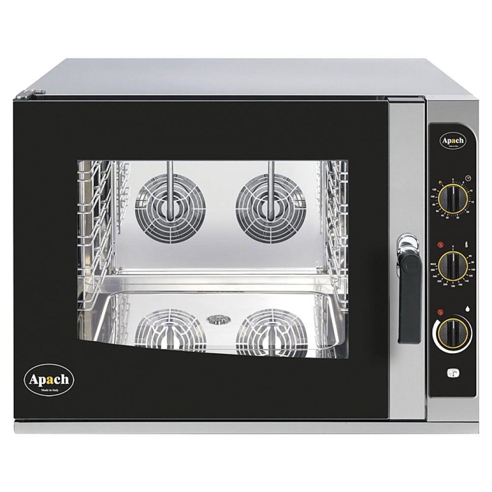 Пароконвектомат Apach AP5M предназначен для обжаривания, приготовления на пару, бланширования, запекания и других видов тепловой обработки продуктов на предприятиях общественного питания и торговли. Подсветка камеры осуществляется галогеновой лампой. Камера легко чистится благодаря закругленным углам. Корпус выполнен из нержавеющей стали, дверца - из двойного закаленного стекла.