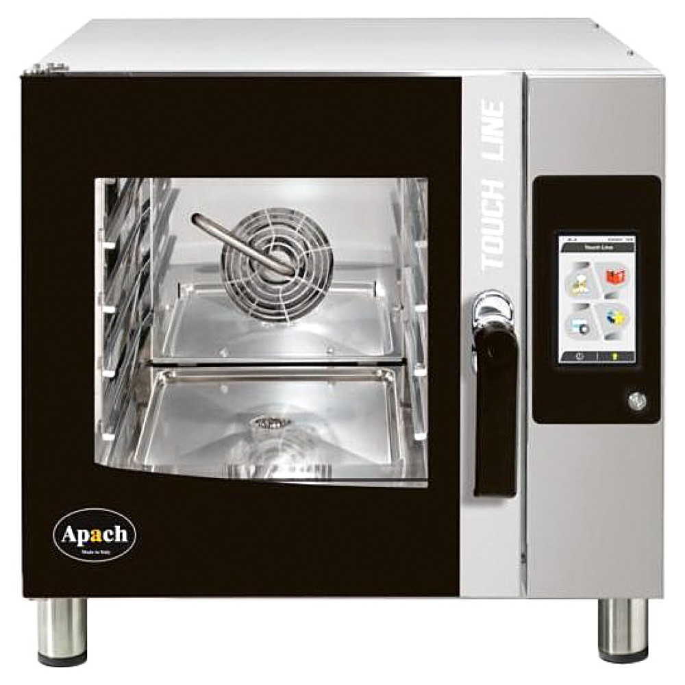Пароконвектомат Apach AP5T предназначен для обжаривания, приготовления на пару, бланширования, запекания и других видов тепловой обработки продуктов на предприятиях общественного питания и торговли. Подсветка камеры осуществляется галогеновой лампой. Корпус и камера выполнены из нержавеющей стали.