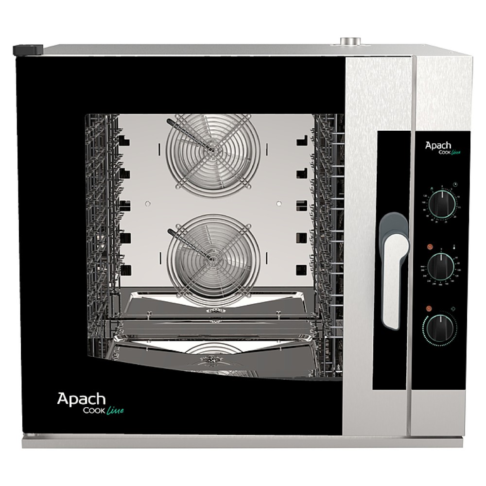 Пароконвектомат Apach AP7QM предназначен для обжаривания, приготовления на пару, бланширования, запекания и других видов тепловой обработки продуктов на предприятиях общественного питания и торговли. Подсветка камеры осуществляется галогеновой лампой. Камера легко чистится благодаря закругленным углам. Корпус выполнен из нержавеющей стали, дверца - из двойного закаленного стекла.