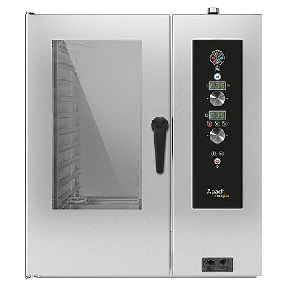 Пароконвектомат Apach Chef Line LEI101S WCF предназначен для обжаривания, приготовления на пару, бланширования, запекания и других видов тепловой обработки продуктов на предприятиях общественного питания и торговли. Модель оснащена электронной панелью управления со светодиодным дисплеем, отдельной кнопкой управления 4 циклами готовки, кнопкой с внутренней подсветкой для доступа к программам и переключателями Scroller Plus с принципом работы "Крути и Нажимай" для подтверждения выбора. Корпус электронагревателей выполнен из нержавеющей стали INCOLOY 800, решетки - из нержавеющей стали.