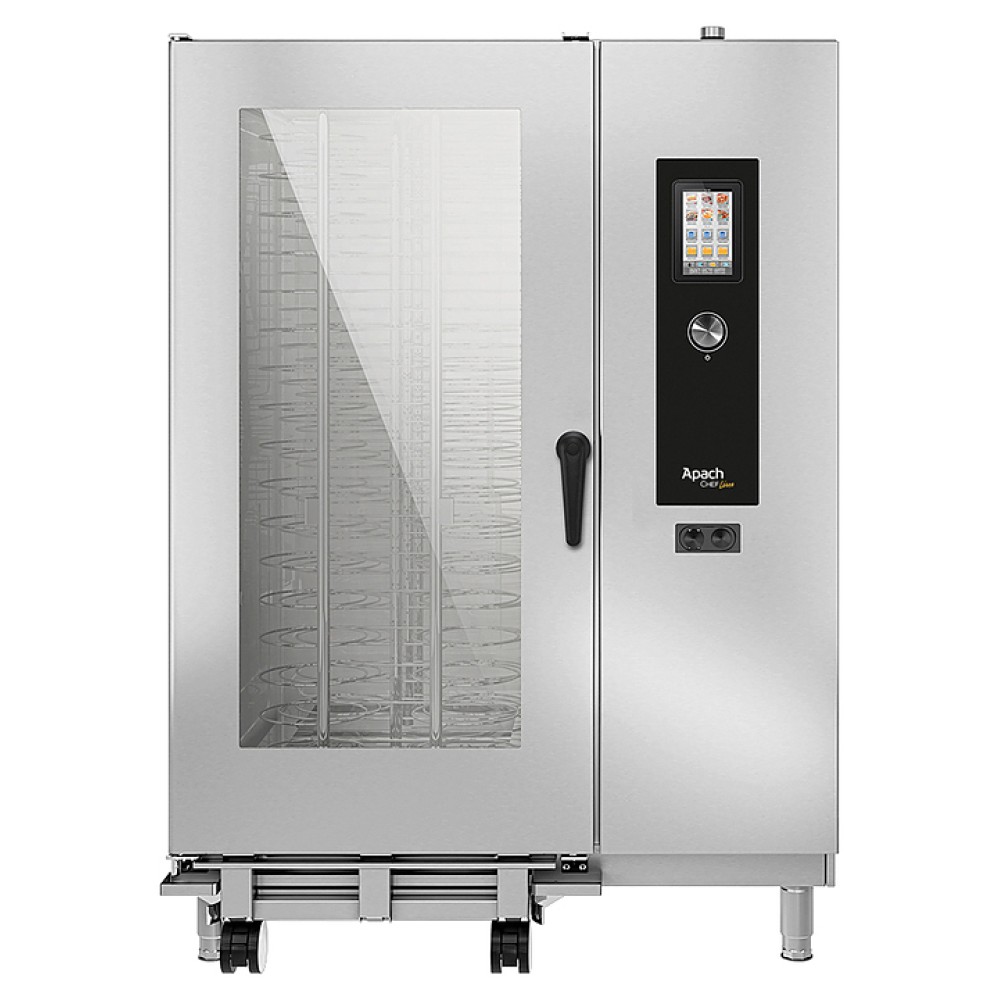 Пароконвектомат Apach Chef Line LGI202T предназначен для обжаривания, приготовления на пару, бланширования, запекания и других видов тепловой обработки продуктов на предприятиях общественного питания и торговли. Модель оснащена сенсорной панелью управления с цветным дисплеем и переключателем Scroller Plus с принципом работы "Крути и Нажимай" для подтверждения выбора. Расширительная камера теплообменника - из жаростойкой стали AISI 310S, решетки - из нержавеющей стали.