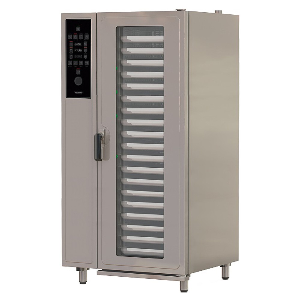 Пароконвектомат Gabino Combi-2011b предназначен для обжаривания, приготовления на пару, бланширования, запекания и других видов тепловой обработки продуктов на предприятиях общественного питания и торговли. Модель оснащена 3-канальным термощупом, светодиодной лампой, электронной панелью управления, инвенторным вентилятором, таймером и дверным механизмом с двухходовым замком. Корпус выполнен из шлифованной нержавеющей стали, детали, подвергаемые санитарной очистке - из нержавеющей стали AISI 304.