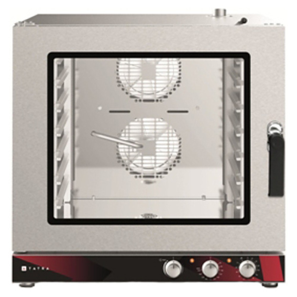 Пароконвектомат Tatra TB06M1L предназначен для обжаривания, приготовления на пару, бланширования, запекания и других видов тепловой обработки продуктов на предприятиях общественного питания и торговли. Модель оснащена электромеханической панелью управления и 2 реверсивными вентиляторами. Корпус и камера выполнены из нержавеющей стали, двойная дверь - из закаленного стекла.