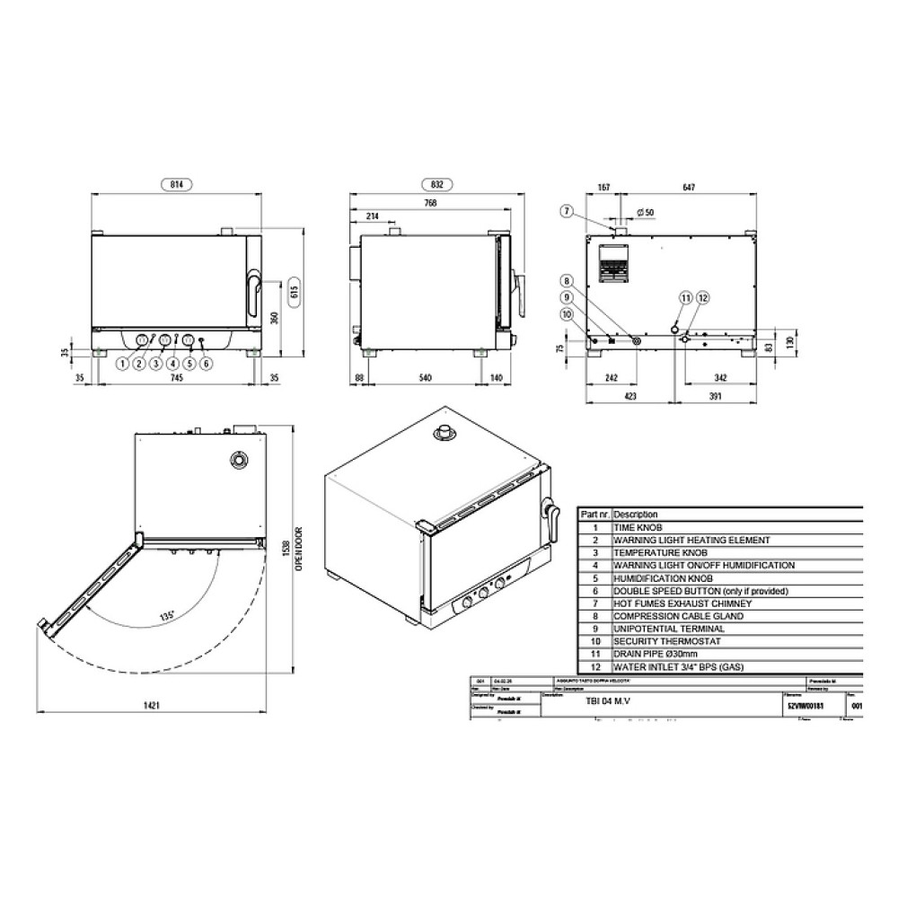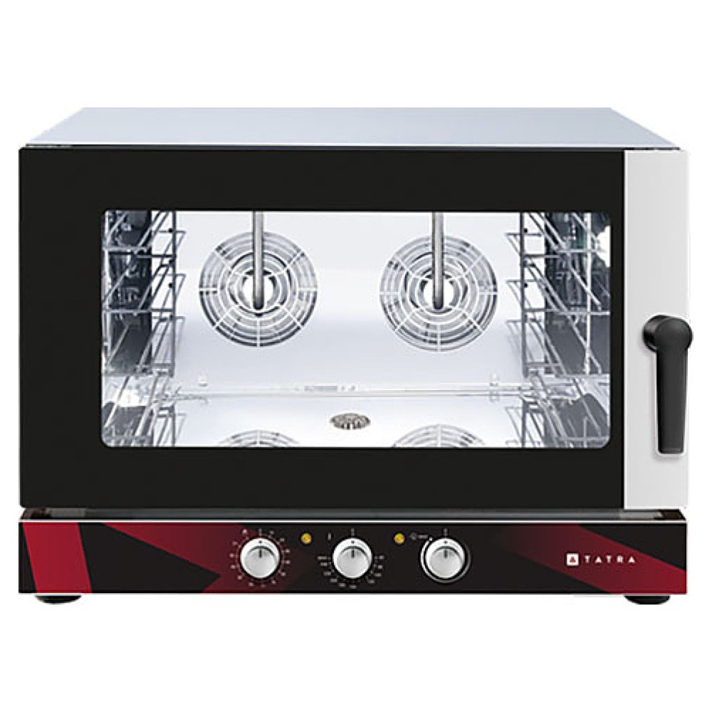 Пекарский пароконвектомат Tatra TBI 04 M.V предназначен для выпекания кондитерских и хлебобулочных изделий из свежего и замороженного теста с применением режимов сочетания конвекции и пара. Модель оснащена электромеханическим управлением, инжекторным пароувлажнением, галогеновым освещением камеры, закругленными углами для легкой очистки, таймером и 2 реверсивными вентиляторами для равномерного приготовления. Двойное жаростойкое стекло сокращает теплопотери и защищает персонал от ожогов. Корпус и камера выполнены из нержавеющей стали.