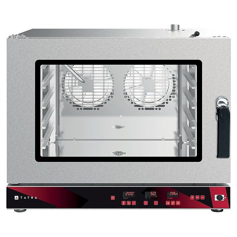 Пароконвектомат Tatra TC05M1L предназначен для обжаривания, приготовления на пару, бланширования, запекания и других видов тепловой обработки продуктов на предприятиях общественного питания и торговли. Модель оснащена электромеханической панелью управления и 2 реверсивными вентиляторами. Корпус и камера выполнены из нержавеющей стали, двойная дверь - из закаленного стекла.