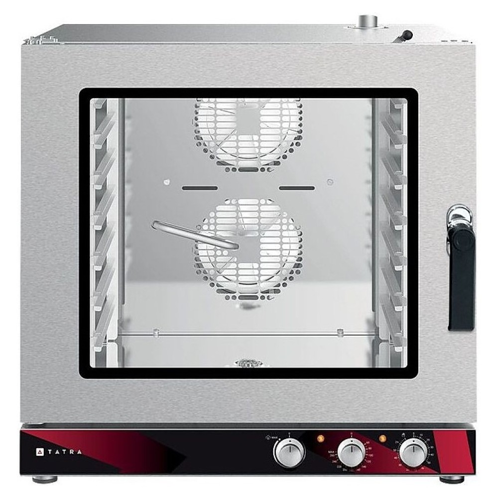 Пароконвектомат Tatra TC07M1L предназначен для обжаривания, приготовления на пару, бланширования, запекания и других видов тепловой обработки продуктов на предприятиях общественного питания и торговли. Модель оснащена электромеханической панелью управления и 2 реверсивными вентиляторами. Корпус и камера выполнены из нержавеющей стали, двойная дверь - из закаленного стекла.