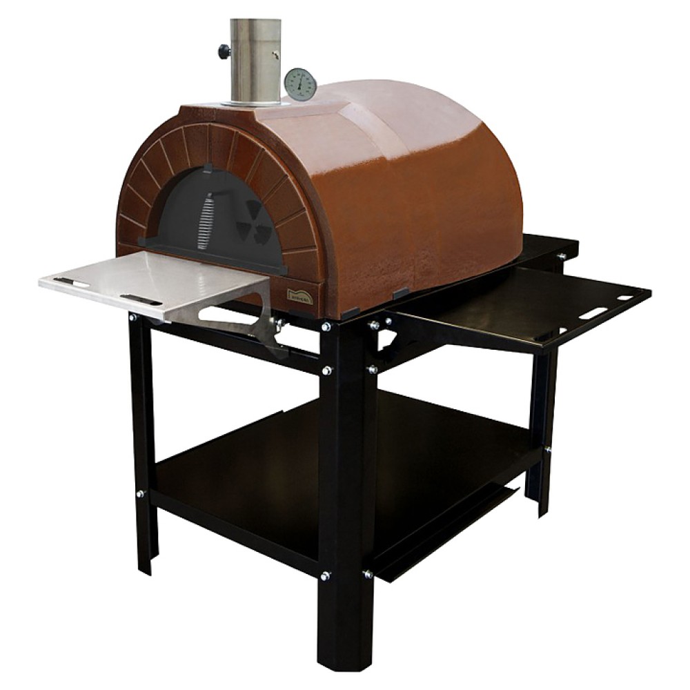 Печь для пиццы Amphora Ready используется на дачах, в частных и загородных домах. Оборудование подходит для встраивания в комплекс уголка барбекю. Модель состоит из 11 строительных элементов, выполненных из высококачественного огнеупорного материала, дверца и подставка - из металла, внешний корпус покрыт керамической глазурью и состоит из 4 строительных элементов.