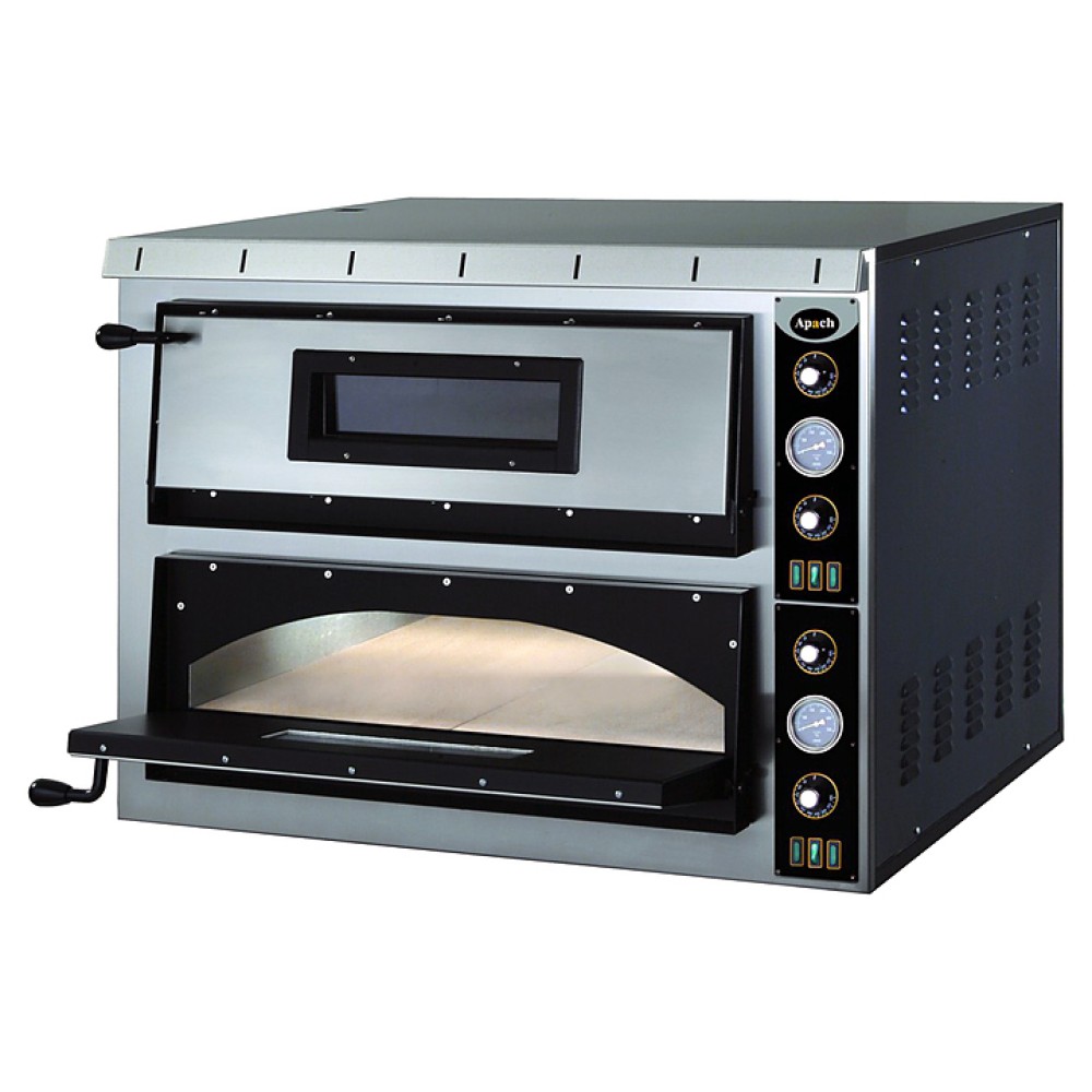 Печь для пиццы Apach AML44 серии "Large" используется на предприятиях общественного питания и торговли. Модель оснащена механической системой управления и 12 нагревательными элементами: 3 сверху и 3 снизу в каждой камере. Лицевая панель выполнена из нержавеющей стали, боковые и задние панели - из окрашенной стали, рабочая камера - из стали с алюминиевым покрытием, под - из огнеупорного материала сертифицированного для пищевых продуктов.