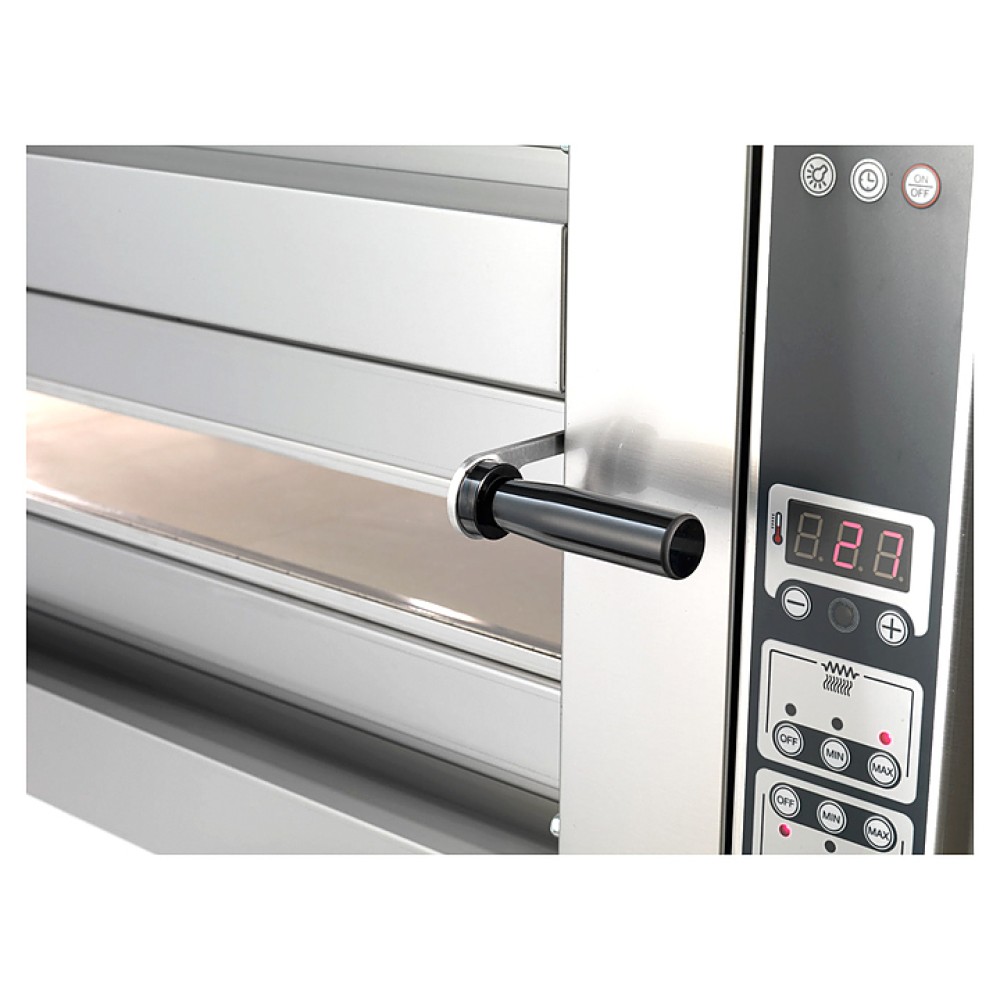 | Диаметр пиццыот 35 до 50 см | Источник тепла380 В | Количество камер (подов)2 |