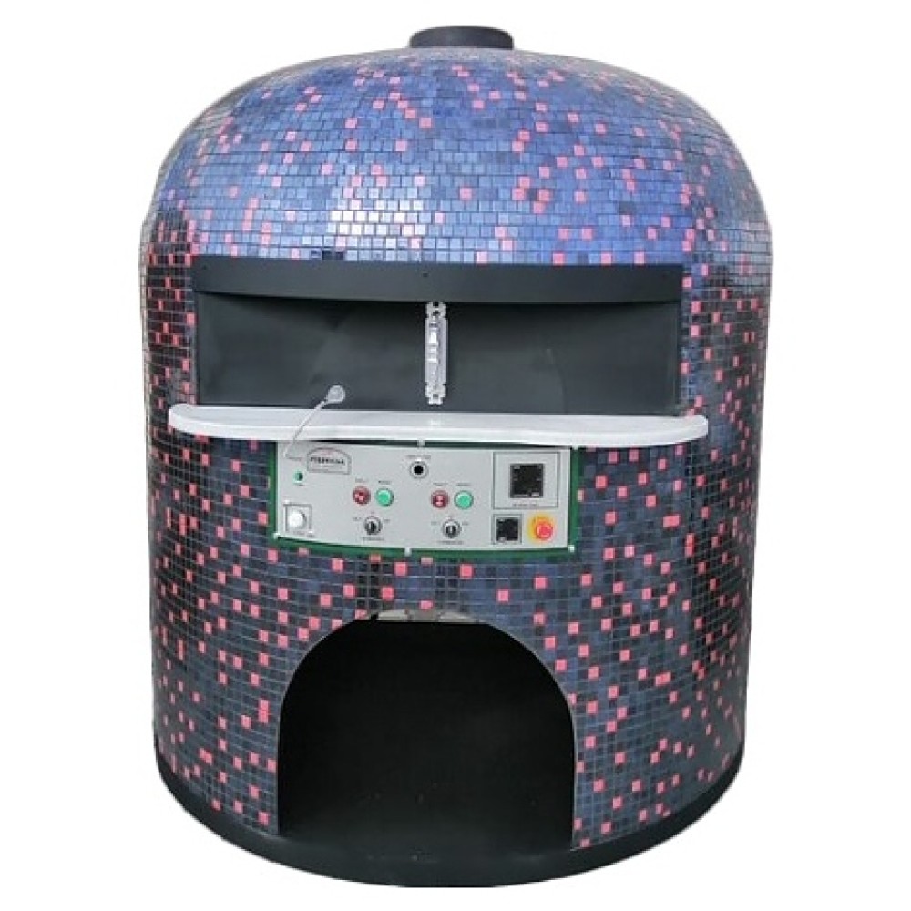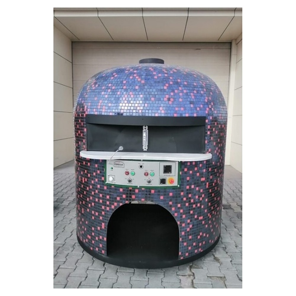 Дровяная печь Firinmak TurboWood 180 используется в ресторанах, барах, кафе, на других предприятиях общественного питания и торговли для выпекания пиццы, хлеба и пирогов, приготовления шашлыка и гриль-блюд, обжарки, тушения и запекания по рецептуре, основанной на томлении и длительной выдержке при медленно падающей температуре. Модель оснащена камерой с подом и куполом круглого сечения, патрубком дымохода сверху, заглубленным устьем в форме арки со съемной заслонкой, расположенной под устьем электромеханической панелью управления с поворотным переключателем и цифровыми дисплеями. Купол выполнен из бетона и армирован металлической сеткой, стенд – из металла с антикоррозийным покрытием, внешняя облицовка – из листовой стали с антикоррозийным покрытием порошковой краской, теплоизоляция свода купола – из минеральной ваты, теплоизоляция основания – из газобетона.