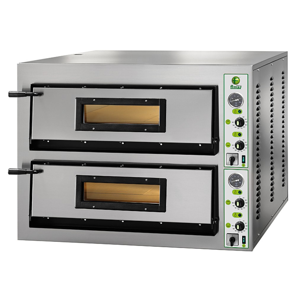 Печь для пиццы FIMAR FML/4+4 используется на предприятиях общественного питания и торговли для выпечки пиццы, лепешек и т.д. Модель оснащена 2 термостатами для каждой камеры, огнеупорной жарочной поверхностью, теплоизоляционным покрытием из минеральной ваты, подсветкой, пирометром и дверками со смотровыми окошками из стекла пирекс. Фронтальная облицовка выполнена из нержавеющей стали.