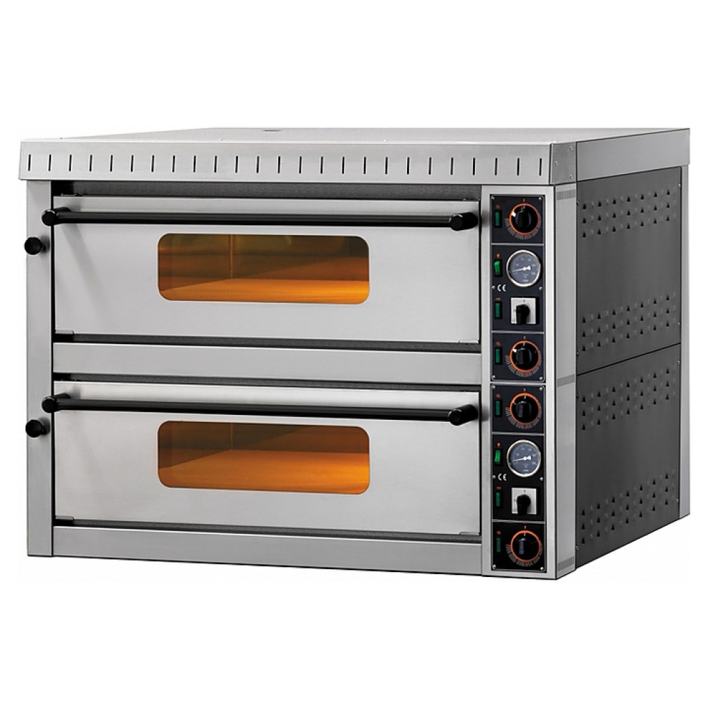 Печь для пиццы GAM MD 6+6 TOP используется на предприятиях общественного питания, в кондитерских, пекарнях, супер- и гипермаркетах с собственной кухней для выпечки пиццы и хлебобулочных изделий, требующих высокой температуры приготовления. Корпус выполнен из нержавеющей стали, дверца - из керамического стекла, камера и под - из огнеупорного камня.