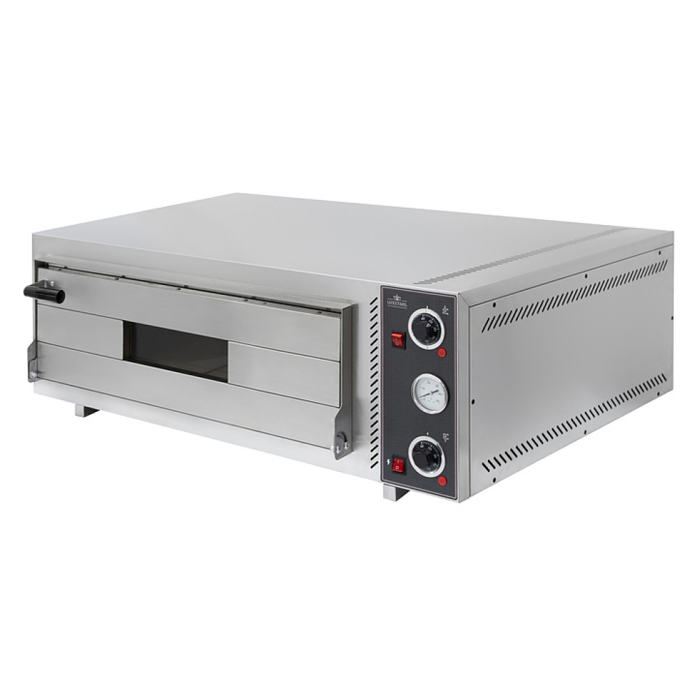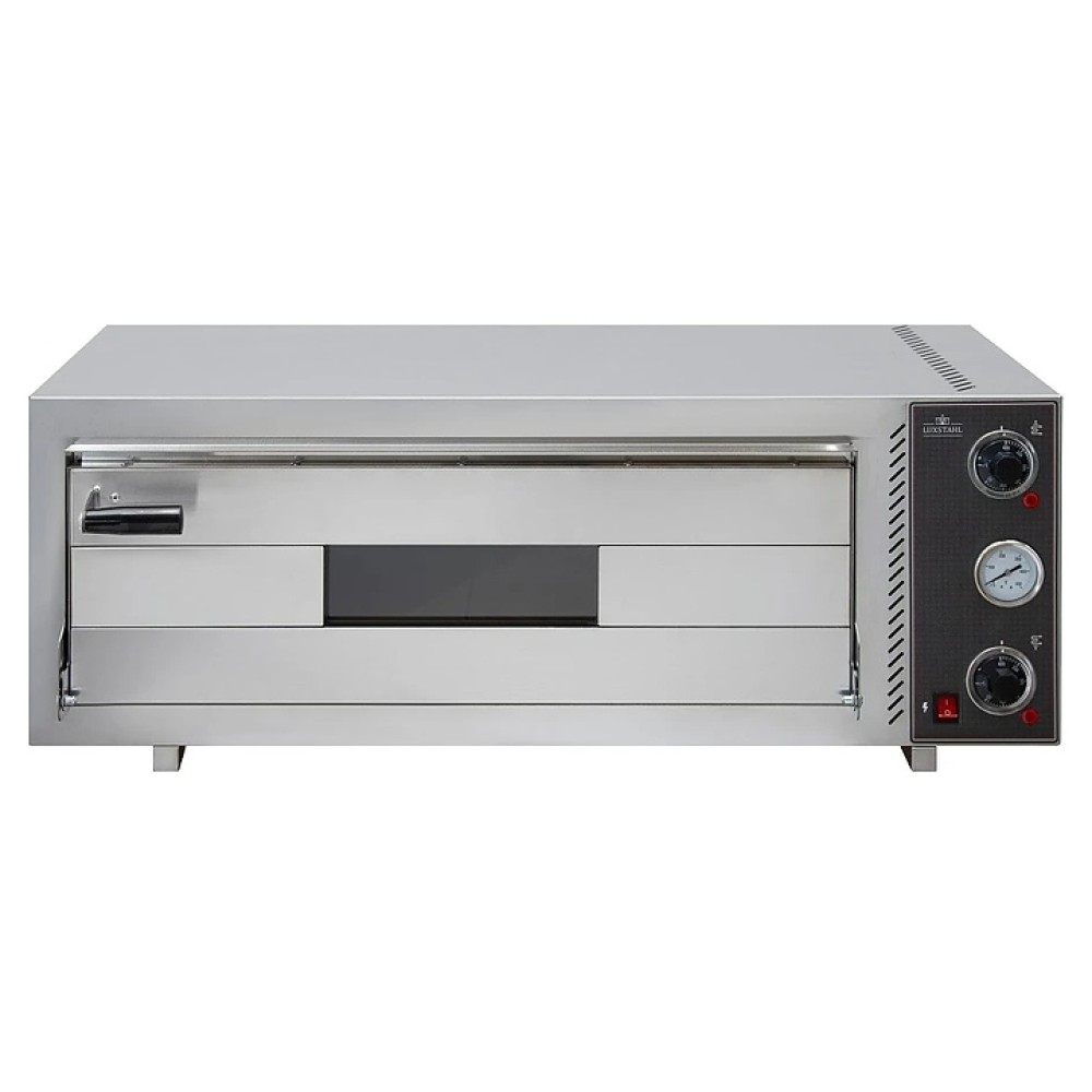 Печь Luxstahl ПЭП-2 предназначена для выпечки и разогрева пиццы, а также приготовления других изделий, не требующих пароувлажнения: фокаччи, хачапури, слоек, запеченных овощей и запеканок на предприятиях общественного питания и торговли. Модель оснащена вместительной камерой, откидной дверцей с рукояткой, механической панелью управления с поворотными регуляторами, светодиодными индикаторами и аналоговым термометром с круглым циферблатом. Корпус и внутренняя облицовка камеры выполнены из высококачественной нержавеющей стали.