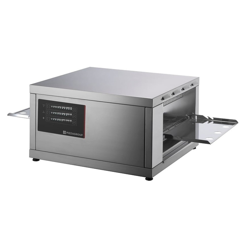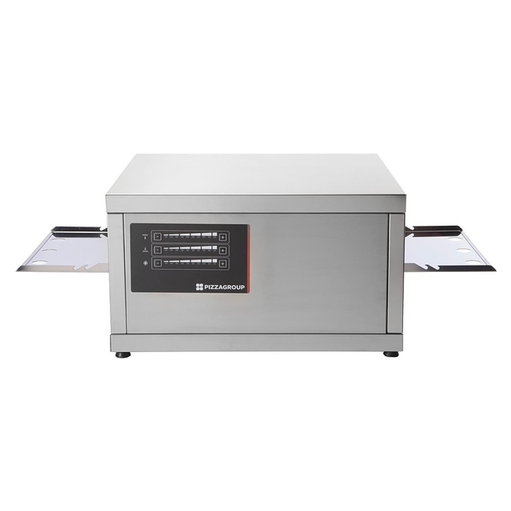 Конвейерная печь Pizza Group Flash предназначена для выпечки пиццы на предприятиях общественного питания и торговли. Модель оснащена цифровой панелью управления, реверсивной лентой, внешними закрывающимися лотками и поддоном для сбора крошек. Под выполнен из металла.