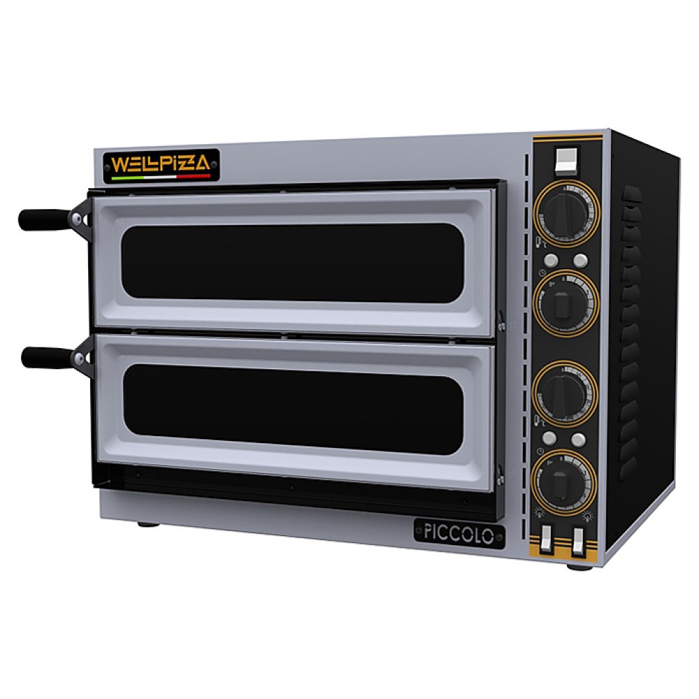 Печь для пиццы WLBake WellPizza Piccolo 2M используется на предприятиях общественного питания и торговли, где не требуется высокая производительность, для выпекания разных видов пиццы. Модель оснащена электромеханической панелью управления, внутренней подсветкой, каменным подом и малым смотровым окном, позволяющим следить за процессом приготовления. Фронтальная часть выполнена из нержавеющей стали.