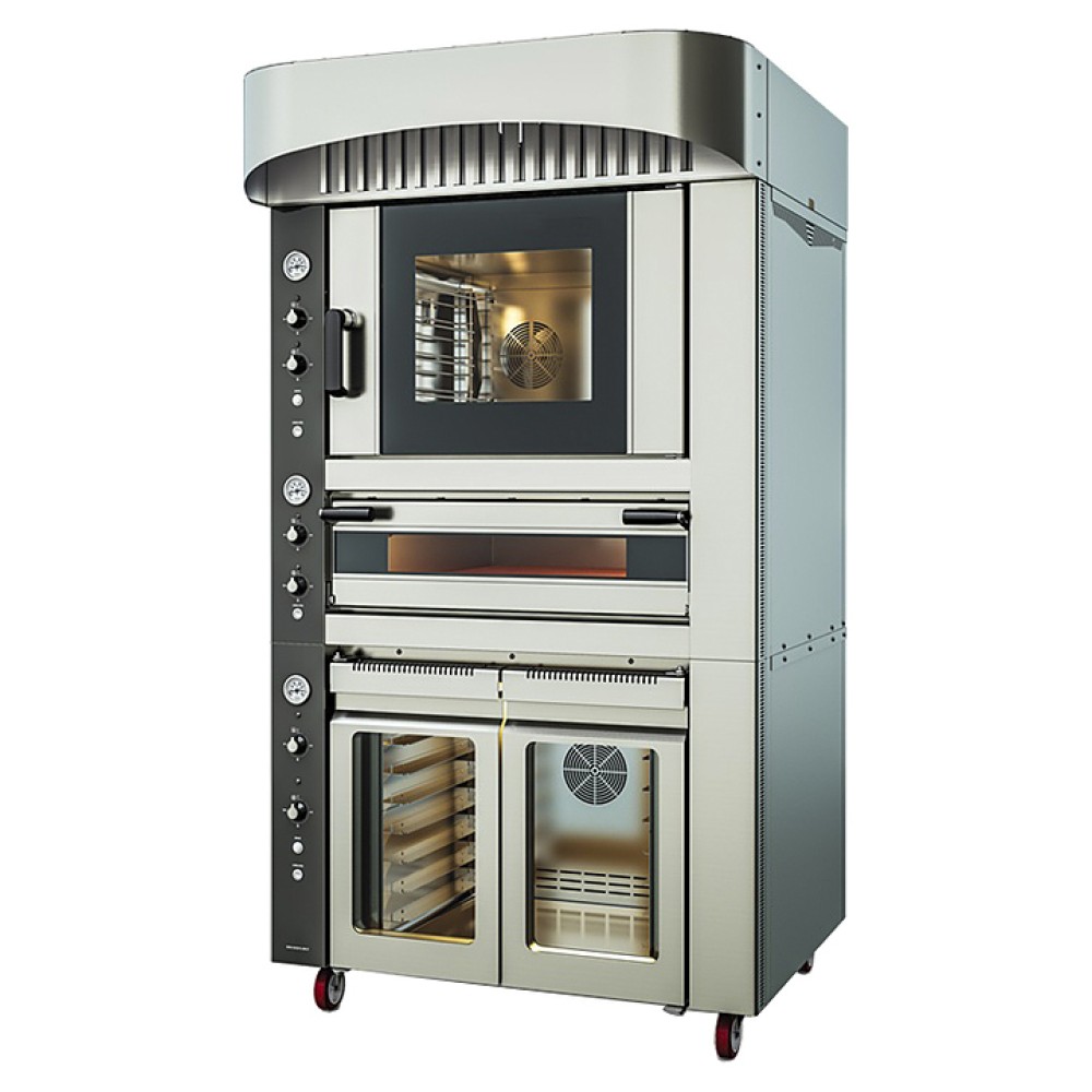 Комбинированный модуль Kocateq FR Combi M предназначен для выпечки хлебобулочных и кондитерских изделий и приготовления различных блюд на предприятиях пищевой промышленности, общественного питания и торговли. Модель состоит из конвектомата, подовой печи, расстоечного шкафа и вытяжного зонта. Корпус выполнен из нержавеющей стали, дверца - из двойного закаленного стекла.