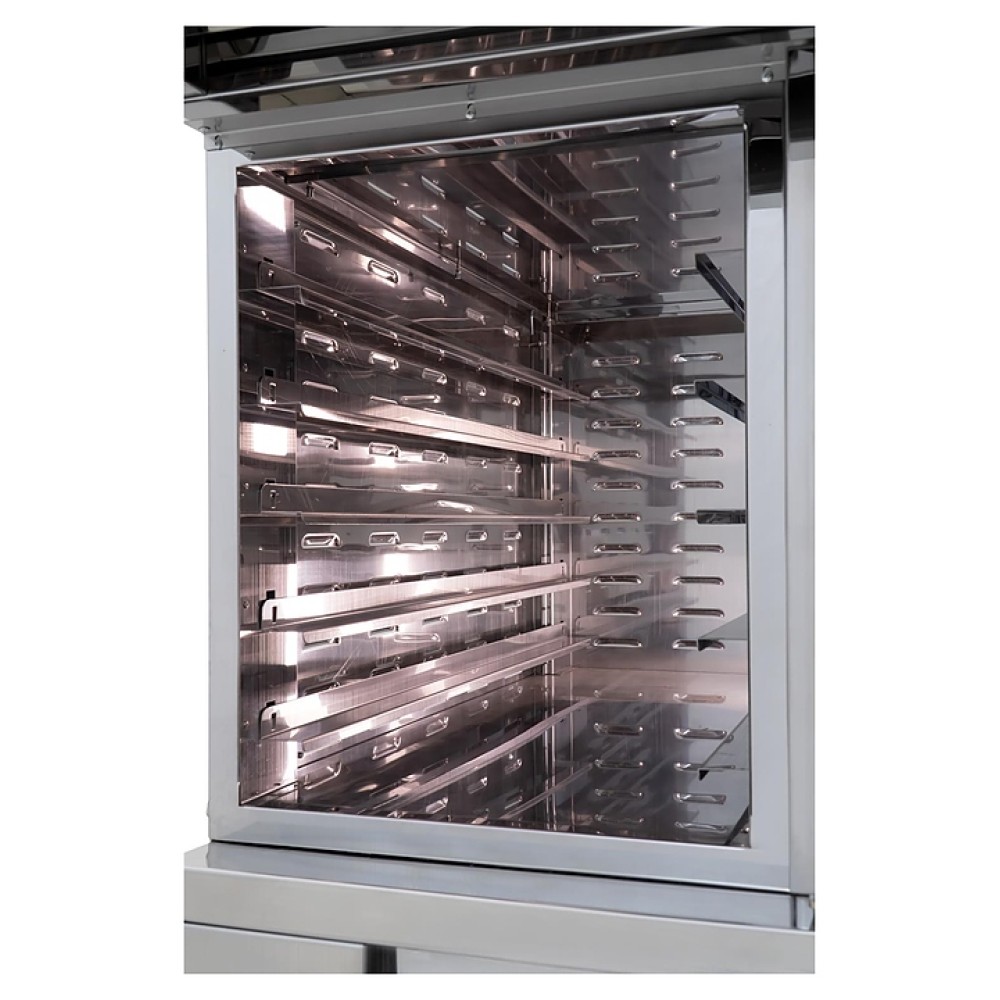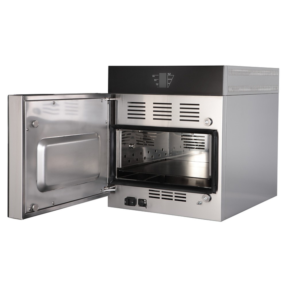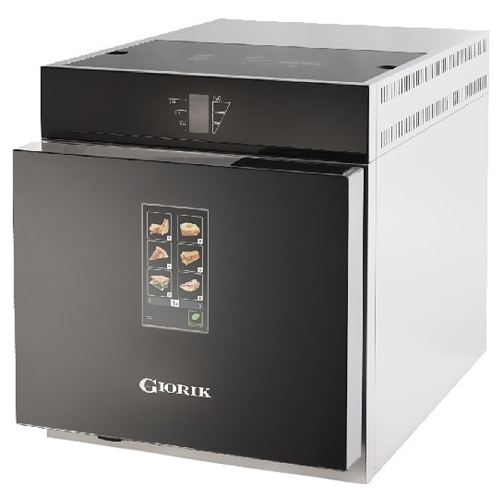 Скоростная электрическая комбинированная печь Giorik POP01 предназначена для быстрого приготовления и разогрева пиццы, фокаччи, панини, тостов, сэндвичей и других блюд в барах на малых предприятиях пищевой промышленности, общественного питания и торговли, а также в домашних условиях. Модель оснащена рабочей камерой с расположенным в задней стенке вентилятором, парогенератором, левосторонней распашной дверью, расположенным в центре фронта двери цветным сенсорным дисплеем управления и индикации с символьными, графическими и цифровыми сегментами. Фронт двери выполнен из высококачественного закаленного стекла c матовой черной поверхностью, противень – из алюминия с антипригарным покрытием, лопатка – из стали.
